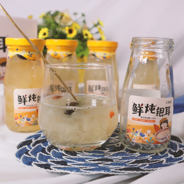 吃就要吃健康又放心的,九养芝每日新鲜银耳现炖,从采摘到入瓶不到一小时,所以胶质更浓稠,用勺子舀起还会有粘稠的拉丝;配料表很干净,无添加剂,高温灭菌,真空包装,可以常温保存9个月,大家可以放心囤货。