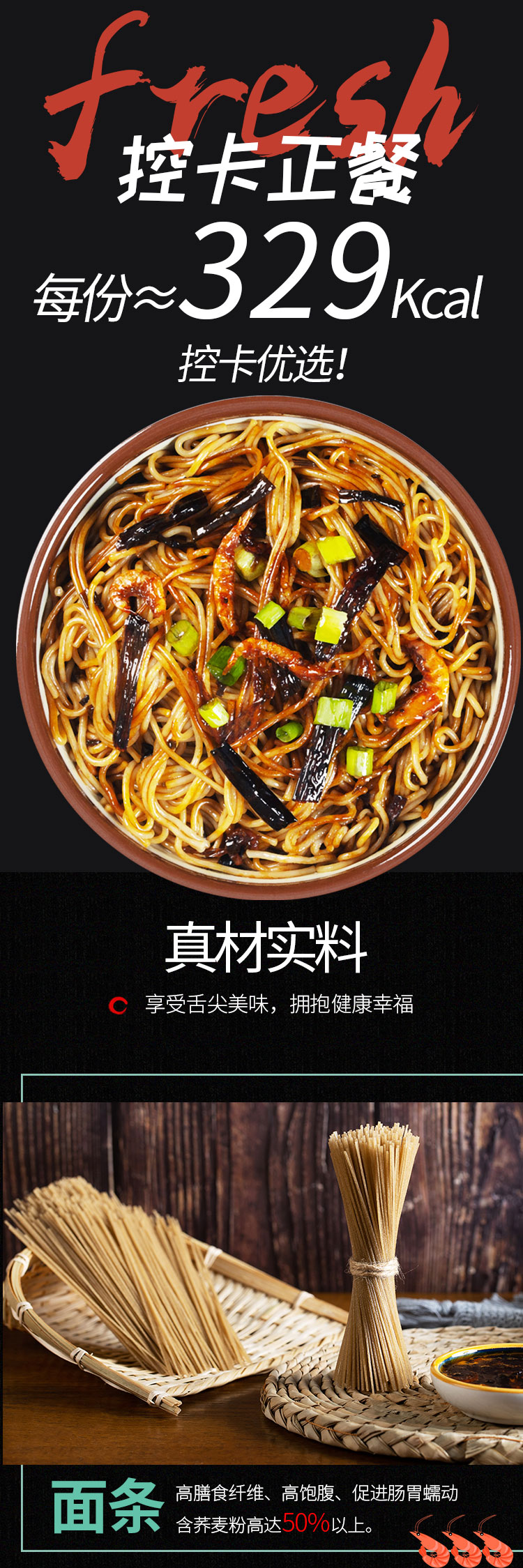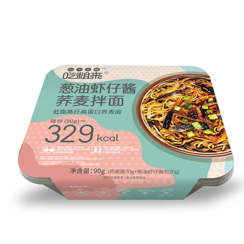 1.控卡正餐,一盒出餐成品的热量约为(面+酱)329Kcal;其中低脂、高膳食纤维、高蛋白质含量的荞麦面,让你吃出健康,吃出美。