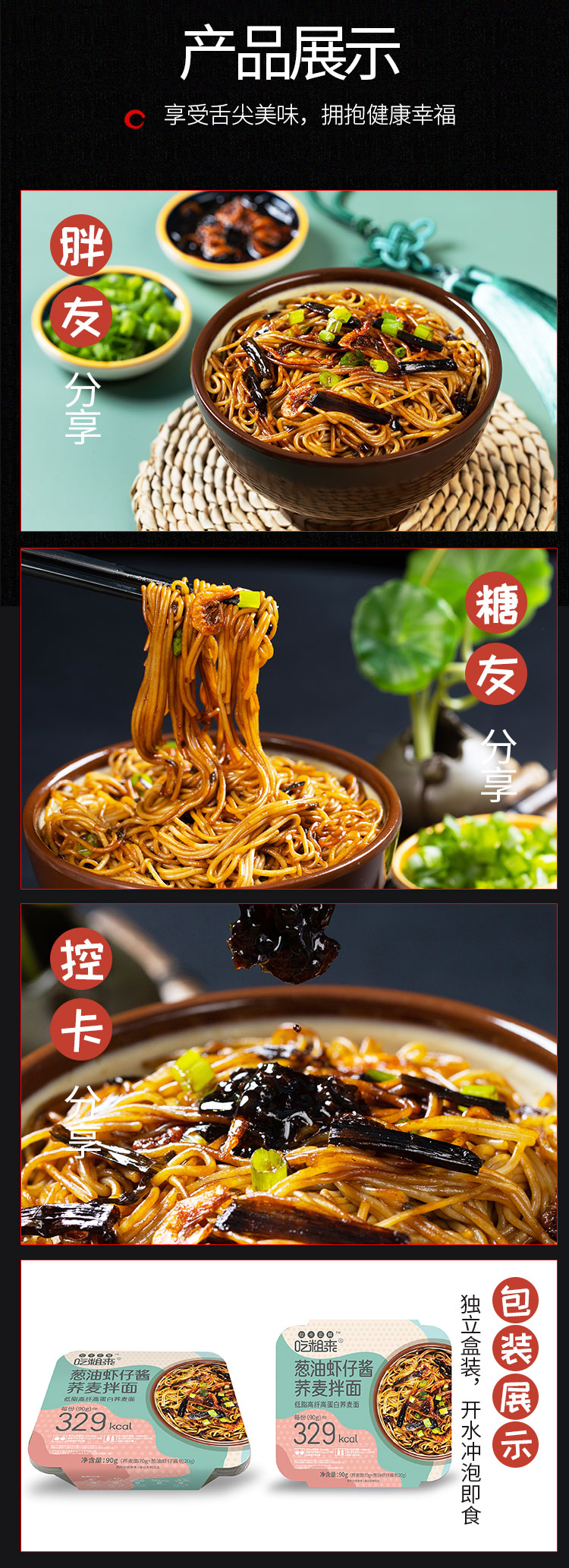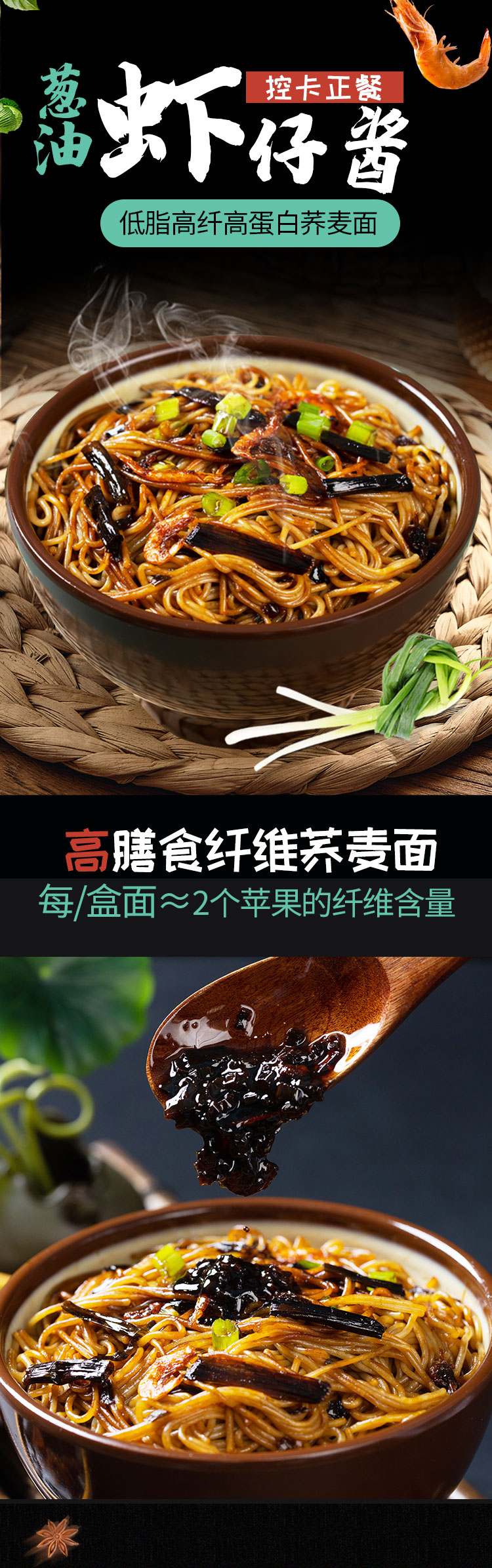 3.本品中无小麦粉添加,且非油炸,饱腹感强,精心调配的葱油虾仔酱味道醇香,从此美味和好身材可以兼得。