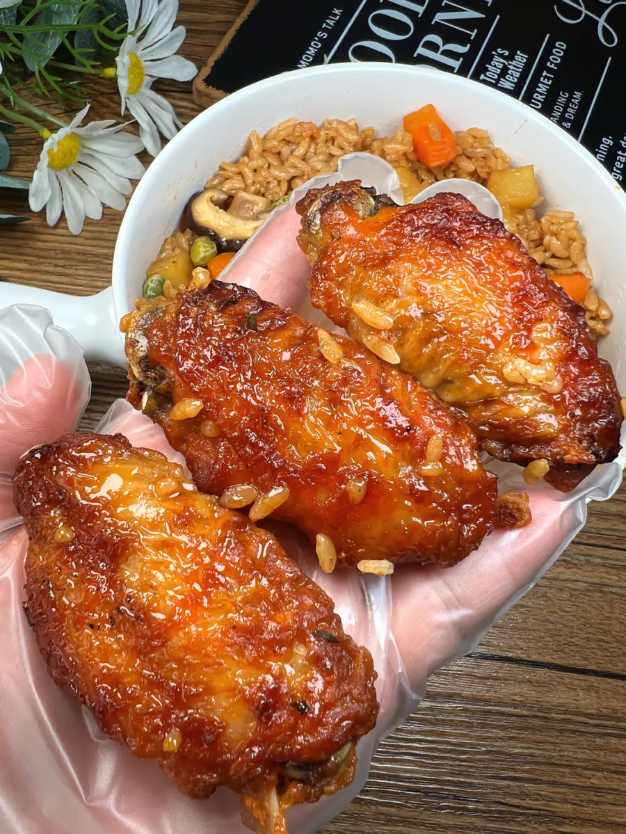 🤩鸡翅用到的是半成品,非常方便,而且比自己在家里折腾半天腌制的要入味,孩子想吃的时候直接扔空气炸锅或者烤箱,随时可以炸不用等待,表皮烤得焦香,里面鲜嫩多汁,一包搞定家里熊孩子。感谢 @天天美食 的分享