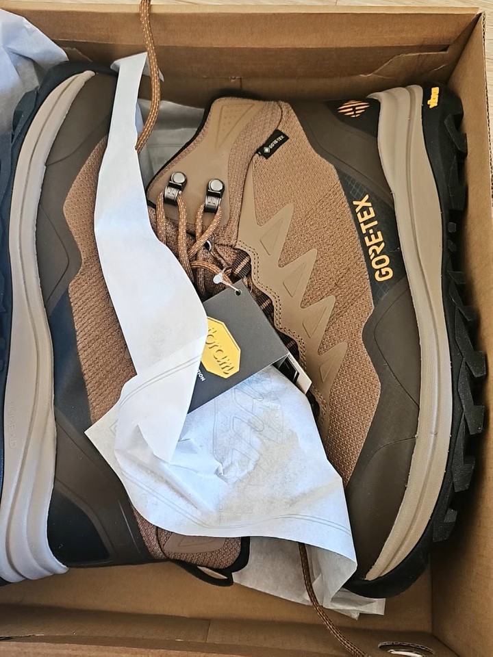 鞋里用的是gtx的半袜套设计,中底用的eva,总的来说可以走一些多日的中等强度徒步,还有这个价格真的很香!