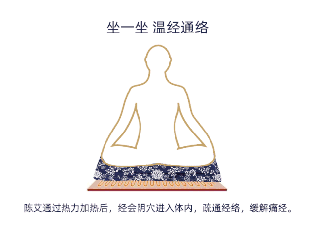 人体臀部有个任脉要穴——会阴穴,它与百会穴一起维持着阴阳气血的平衡,通过坐在艾绒垫上,艾叶药效通过会阴穴疏通体内脉结,促进阴阳气的交替与循环,从而排除体内多余的寒湿。