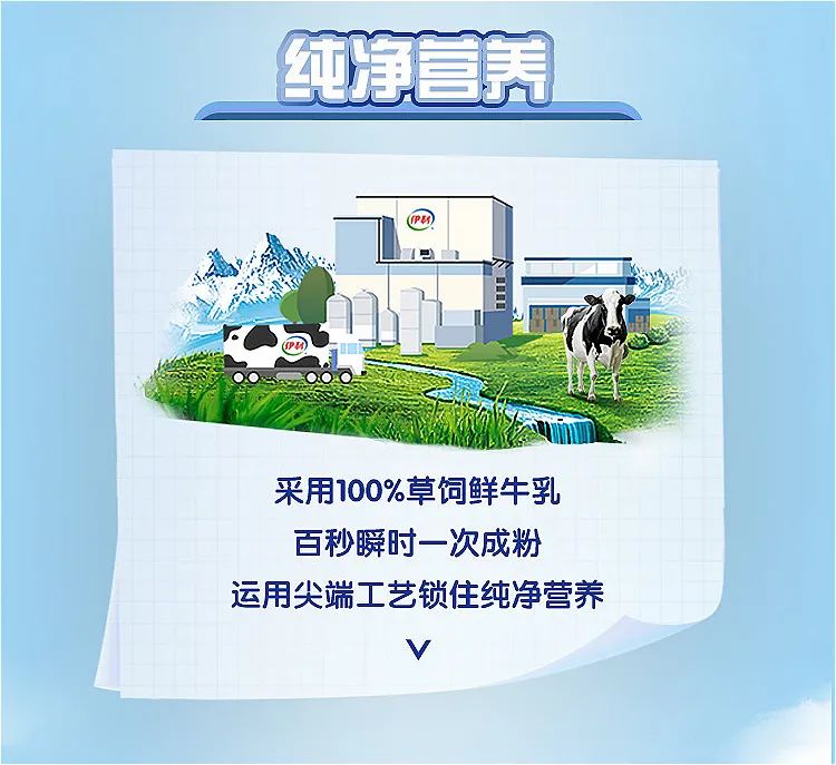 100%草饲鲜牛乳,含有比普通牛奶高2倍的Omega-3,2倍的CLA共轭亚油,3倍的β-胡萝卜素,还有更高的VE含量,对宝宝大脑、视觉发育等都有好处。