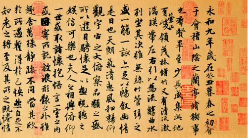 东晋穆帝永和九年(353年)三月初三,王羲之与谢安、孙绰等41人,宴聚于绍兴市郊会稽山阴的兰亭溪畔,26人赋诗41首,并聚诗成集,为《兰亭集》,王羲之为之书写序文手稿,曰《兰亭集序》。序中记叙兰亭周围山水之美和聚会的欢乐之情,抒发作者对人之生死、修短随化的感叹。