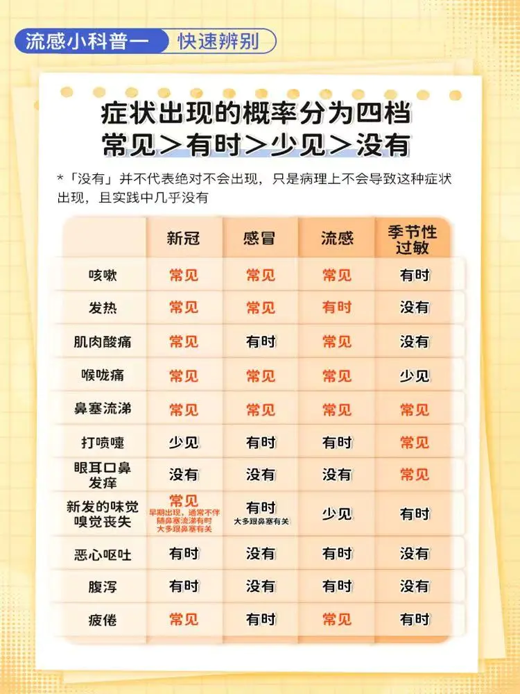随着疫情的快速发展💥,出现了一个很现实的问题,有发烧、咳嗽等症状,但是没有核酸和抗原检测,如何分辨自己到底是感冒、流感还感染了新冠?