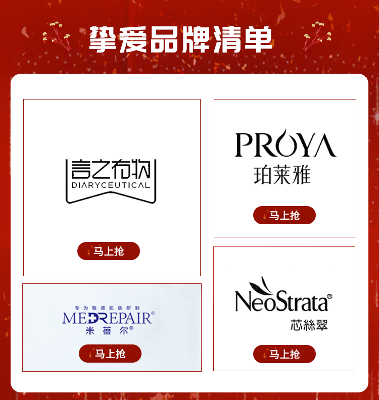 这个结构还有一个隐藏的好处——由于这个油包水的“水”,其实是上文说的藻提取物,据说这个原料里还加入了果酸,所以它的pH值比较低。面霜的特殊结构使得藻提取物是被包裹在油里的,即使pH值比较低也不会直接接触皮肤造成刺激。如果细心观察一下配方,大家会看到一连串的葡萄糖酸X,这样的成分,其实这些成分也是为了为肌肤提供足量的微量元素,提供相应的修护力。而浓度合理的烟酸可以用于改善皮肤光老化,在海蓝之谜的配方中也很常见。今天打折的彩妆也都是实力超强的大牌产品!彩妆产品永远不嫌多,毕竟每天根据衣服选不同的口红颜色和腮红,才是我们精致girl应该做的事情呀!首先就是每年必囤的CPB长管隔离,就算用到一个一元硬币的量,也不会假白,是可以在秋冬季节真正代替防晒的隔离!今天也给出了惊爆价!香奈儿口红礼盒,三个颜色都不会踩雷,自用划算,送人也体面~没有女孩能抵抗住香奈儿的诱惑吧!经典的任选专区,在这里,你永远能以最便宜的价格薅到最实惠的羊毛~199任选3样,糖糖在这里推荐:943白池花修护精华油+露比黎登LUBRIDERM身体乳+菲诗蔻生姜修洗发水这个组合!面部修护+身体滋润+头皮清爽,全身都能精致迎新年!299任选3样,这个专区口碑好物爆满,比如DR.G的橘防晒、EVM的VC安瓶、人见人爱的露得清维A醇面霜,平时这几样产品买一样基本上就200块左右了,搭配起来超级实惠~499任选3样,这个专区好东西就更多了,安多可多效活肌精华液、冬天离不开的AHAVA死海植萃身体补水膏、瑷尔博士维A醇精研微囊精华液…应有尽有,包你买的满意!如果在我们的粉丝群做一个品牌的词频排名,那第一位一定是言之有物,毕竟言之有物这个品牌就是从我们糖精的需求出发的,每一次改版升级,也都是经过我们的“博士后”一次次的试用和点评的。除了言之有物,另外这三个品牌,也绝对是凭实力荣获并列第二名的珀莱雅、芯丝翠、米蓓尔~这三个品牌的各种单品珀莱雅的双抗、红宝石精华,芯丝翠的耀白、胶水精华,米蓓尔的丝绒霜、固态闪释面膜等等我们都给出了超低折扣!大家一定发现,这一年我们言安堂优选也做了很多改变,我们不仅仅关心大家的皮肤问题,还推出了许多个护、服装产品。