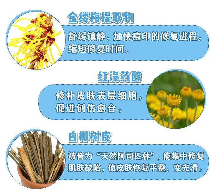 长痘都会有炎症反应,皮肤会尤其敏感脆弱,所以镇定舒缓皮肤也十分重要。