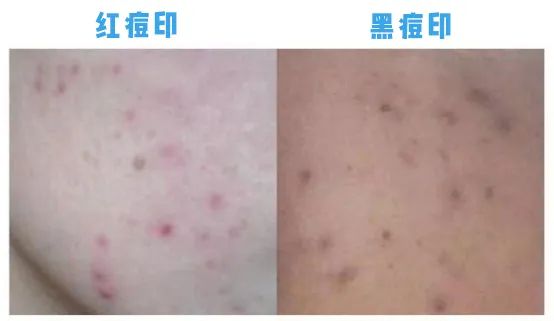 ●红痘印:由于长痘发生炎症反应,导致毛细血管扩张、组织充血。痘痘好了,但炎症还没结束,所以2~3个月里会留有红痘印。