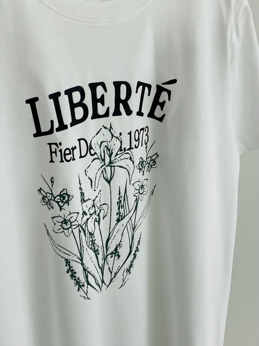 一眼心动的鸢尾花图案,简单浪漫,又带有法式风情,T恤就是为了胸口印花心动~