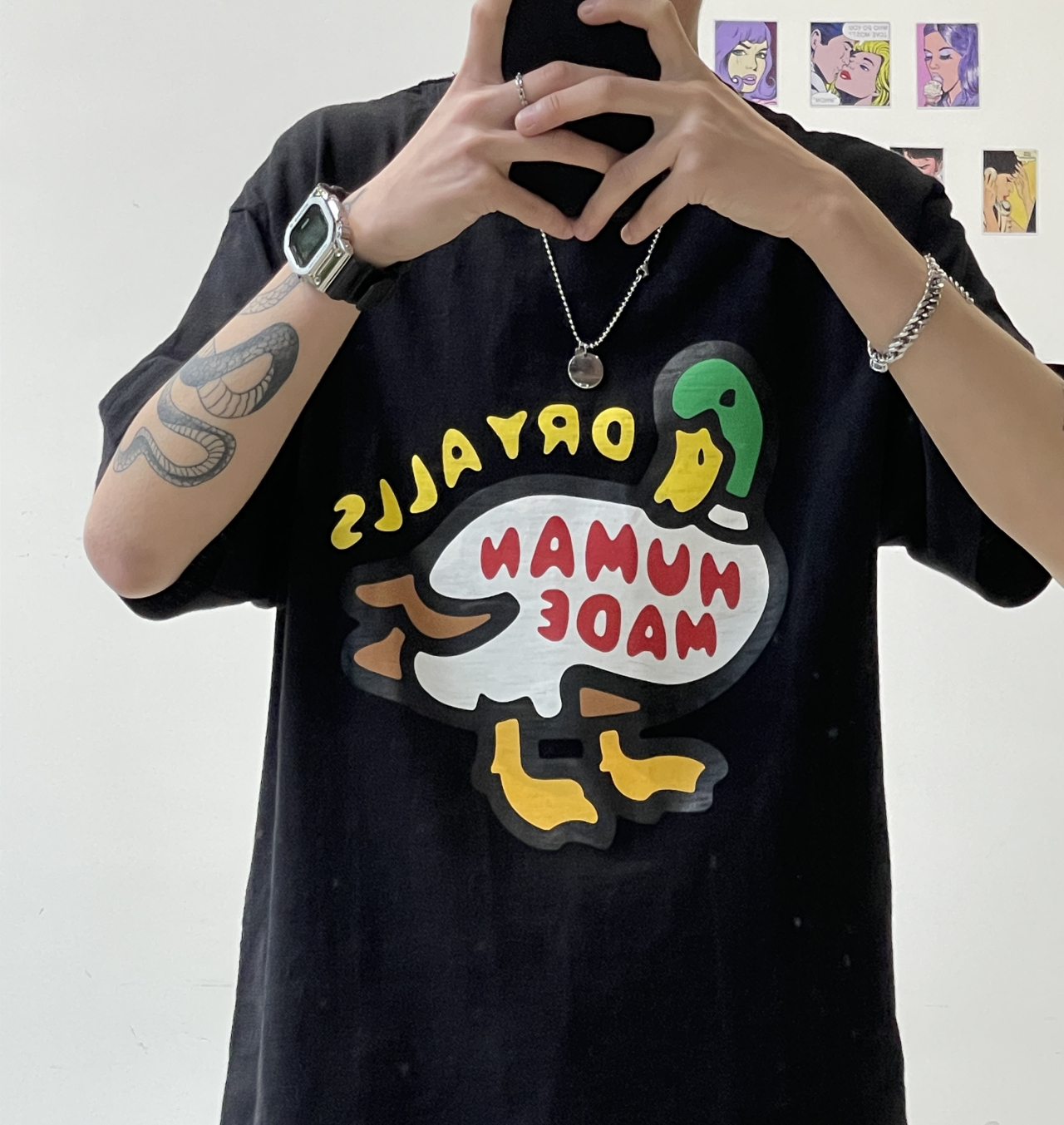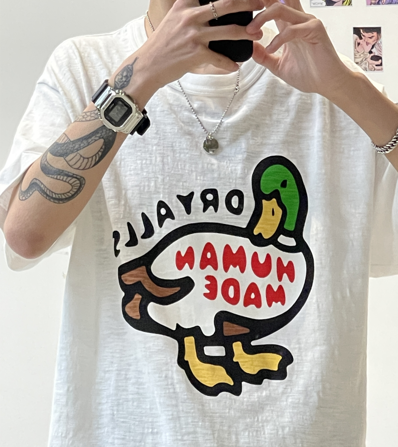 HUMAN MADE 竹节纱 手工圆筒制作 鸭鸭圆领T恤