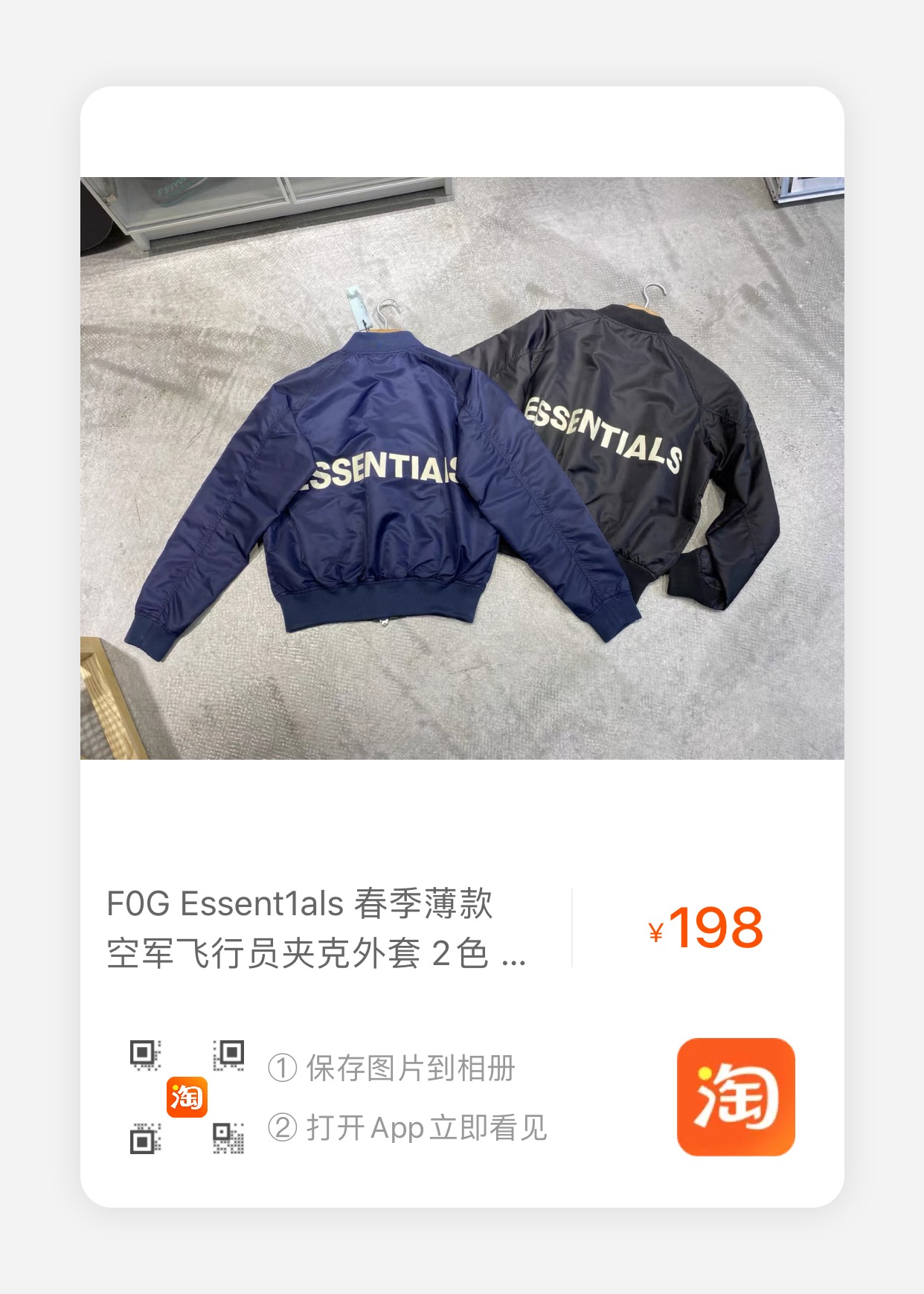 FOG Essentials 春季薄款 空军飞行员夹克外套 2色