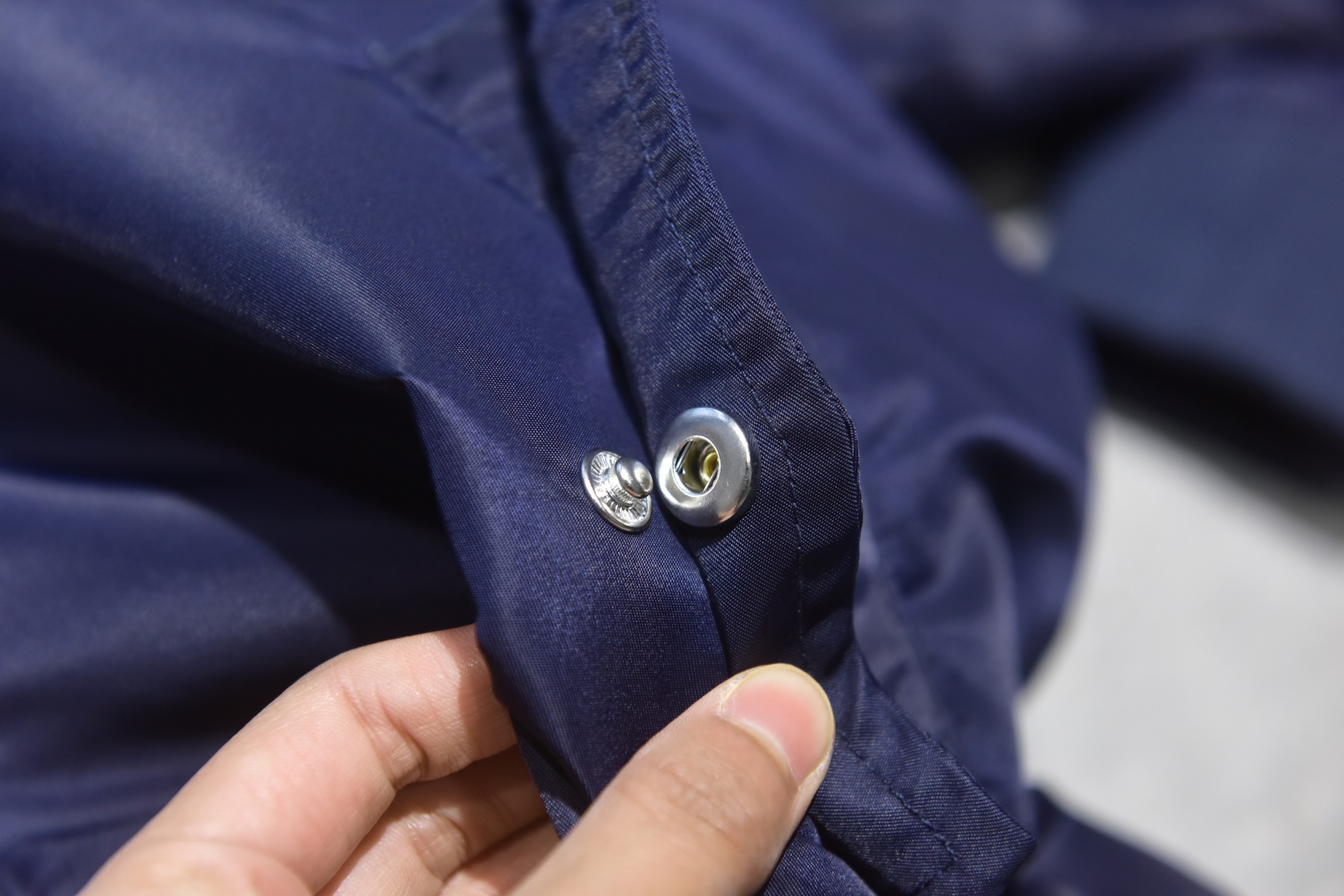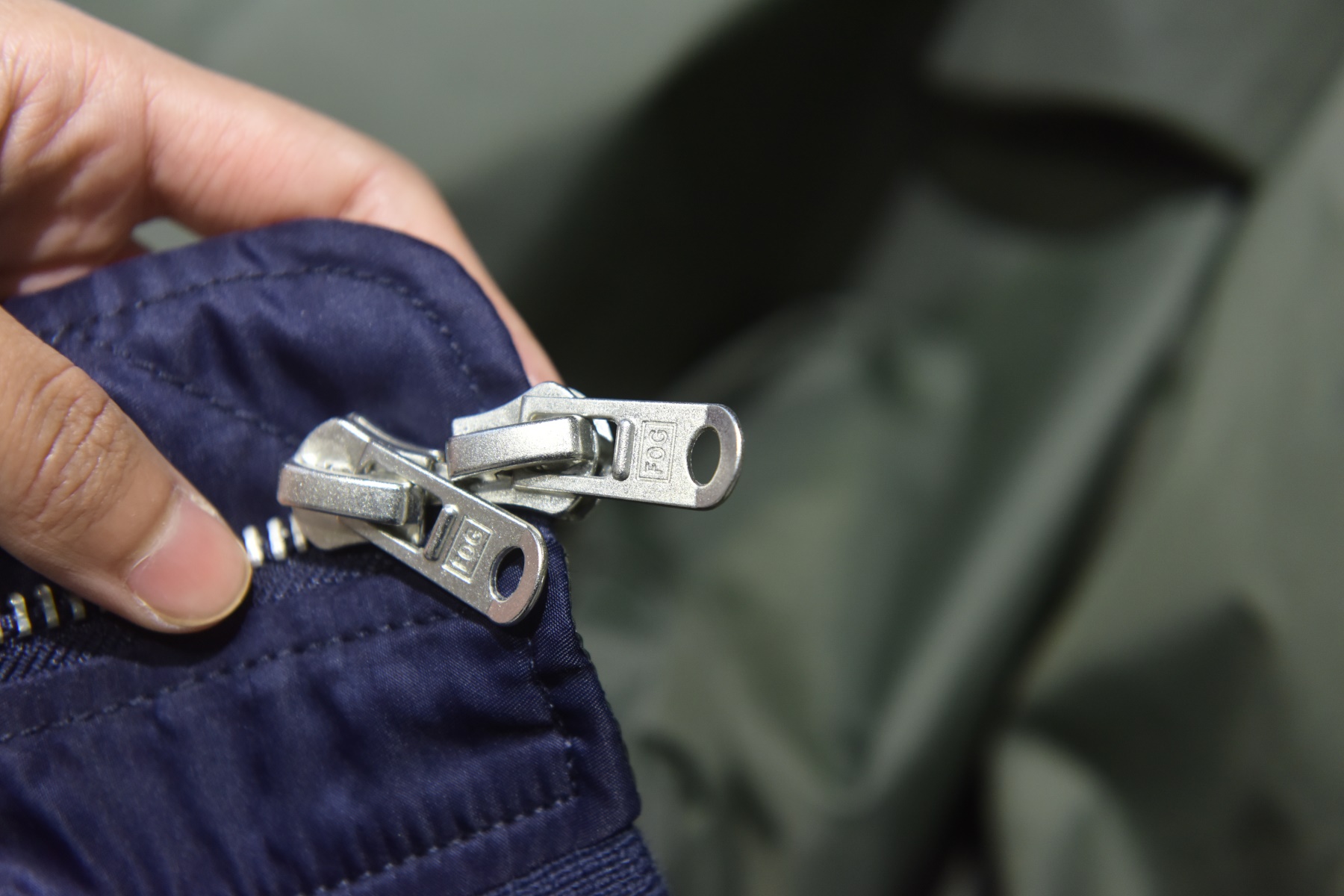 隐藏式设计的钢铆钉扣,主拉链双拉链头的纯钢锻造的RIRI五金