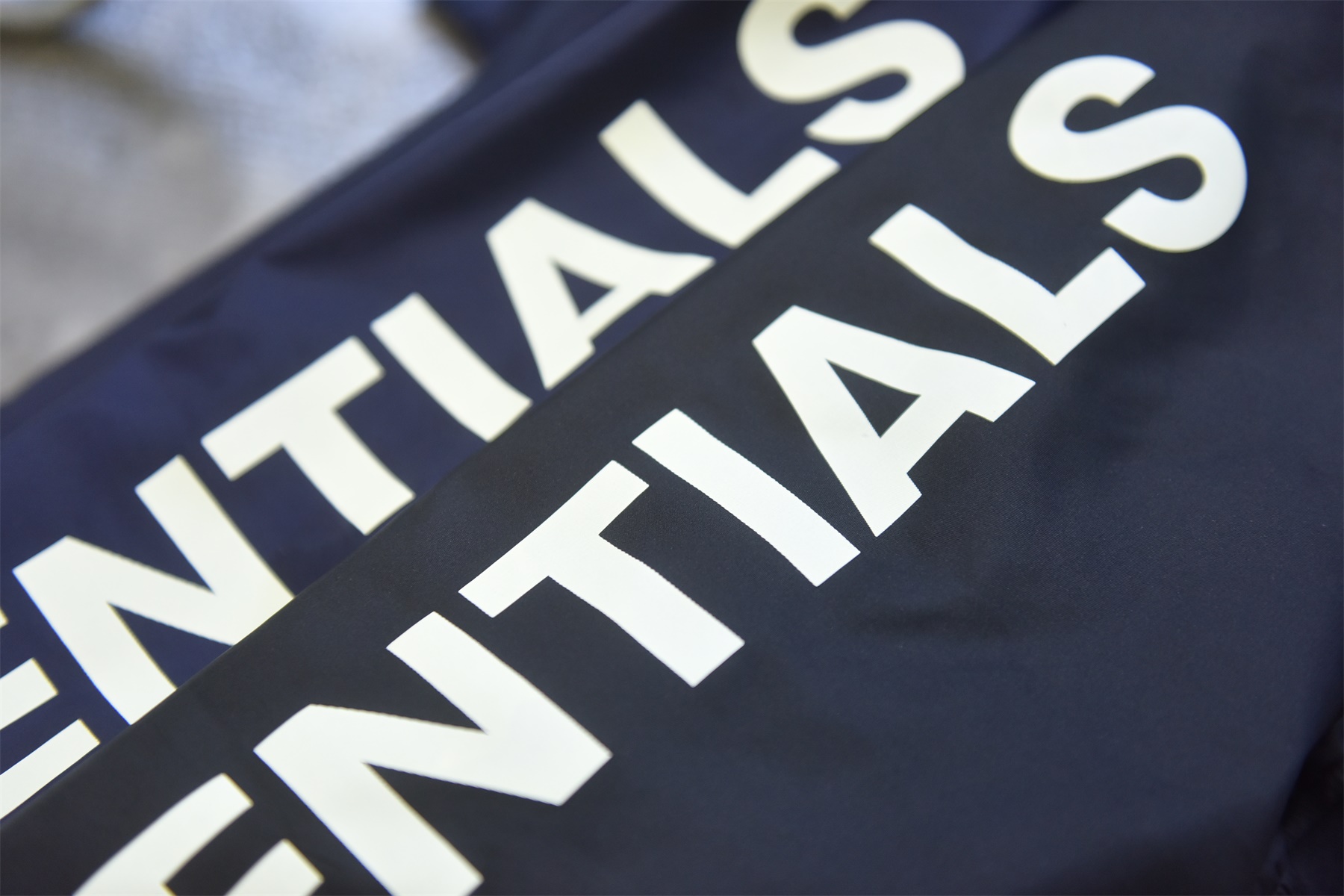 背面醒目的冷淡白色ESSENTIALS字母logo大号印花
