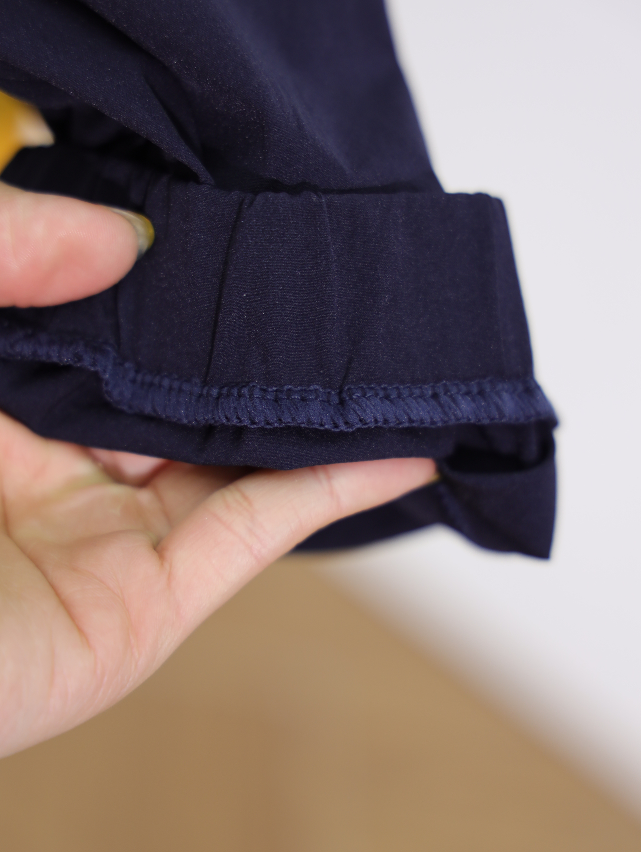 下摆、袖口全部精致锁边,防止毛边脱线。