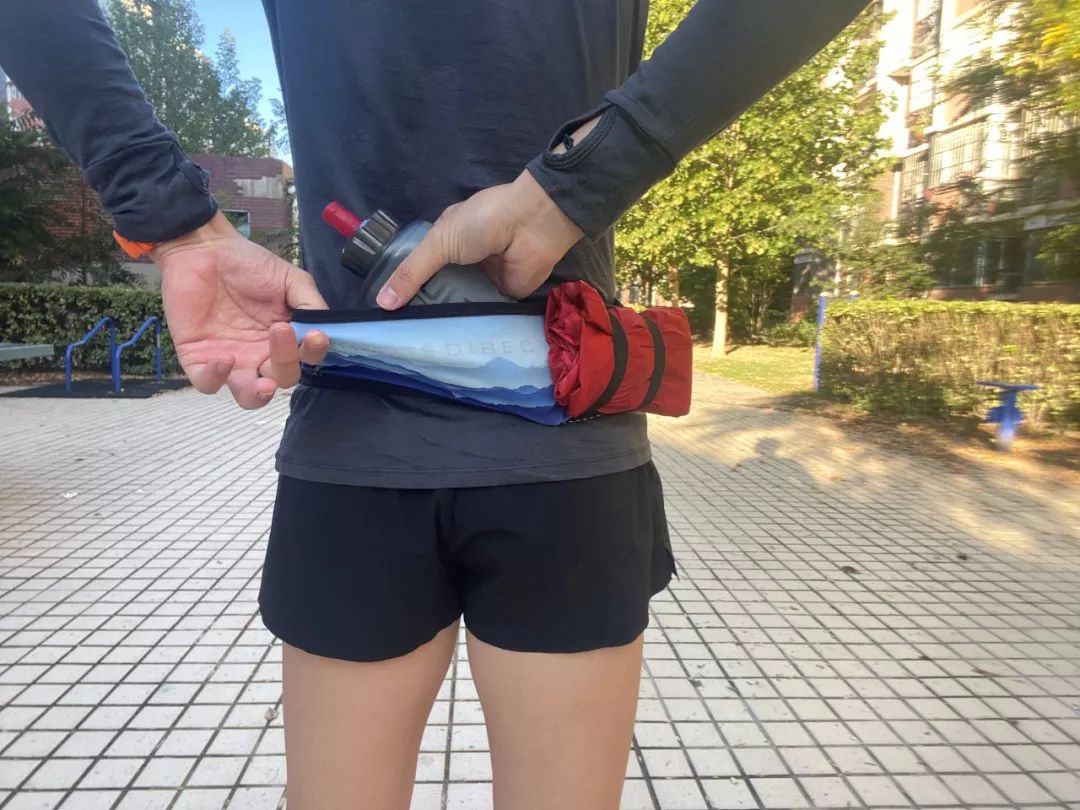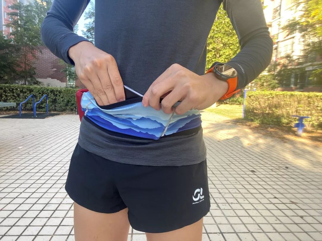 因为之前在使用Utility Belt弹力收纳腰带的时候,如果装的东西不多而且也不重的话,跑起来是没有问题的;或者装的足够多,能够把整个腰带撑起来,这样跑起来也不会晃动;但是有时候在跑的时候会从里边拿东西出来,导致松松垮垮就会晃动。
