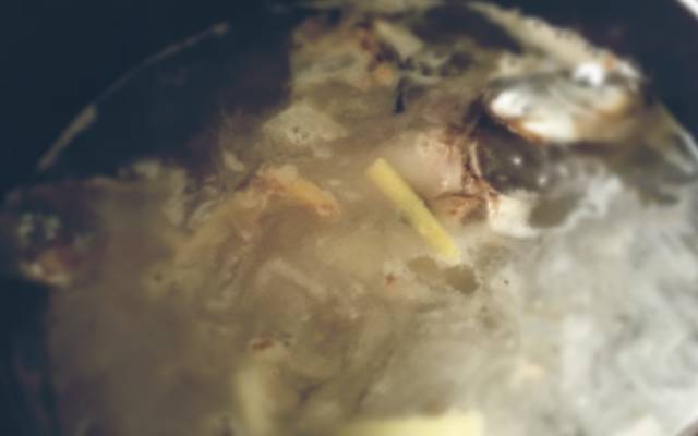 2、3-5花椒,葱段,3-4汤匙的料酒,添入开水,莫过鲤鱼1指高,大火烧开,改中火炖煮20分钟;