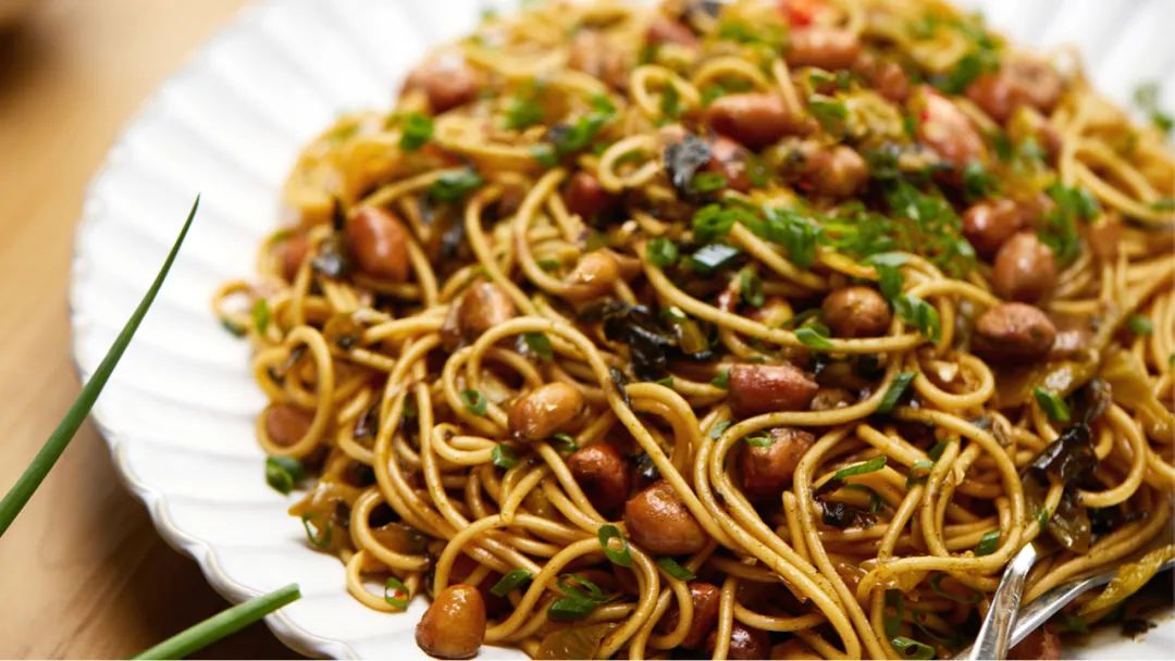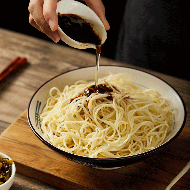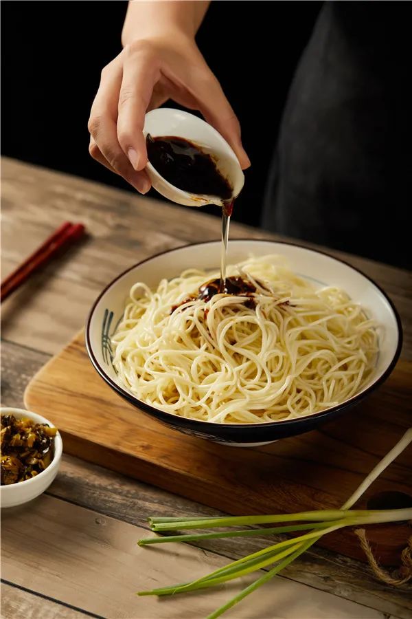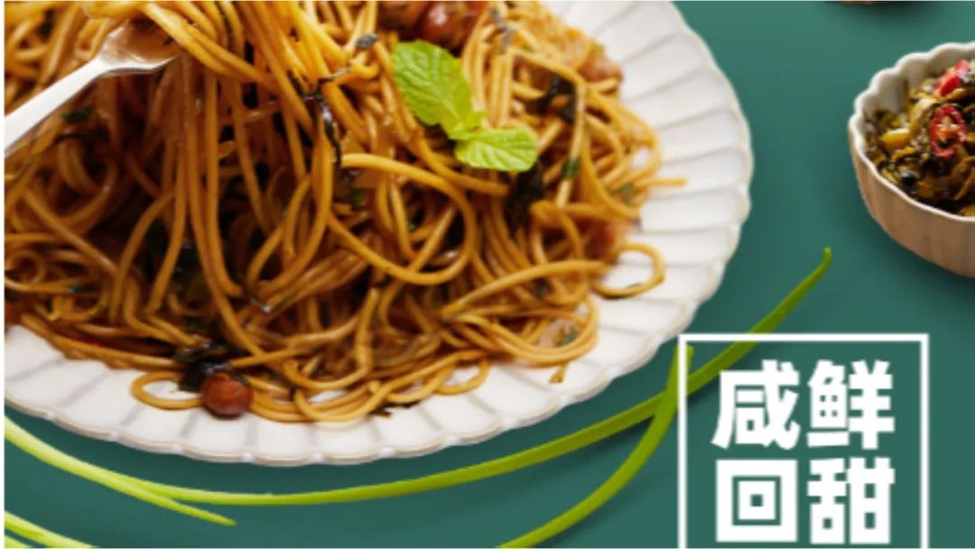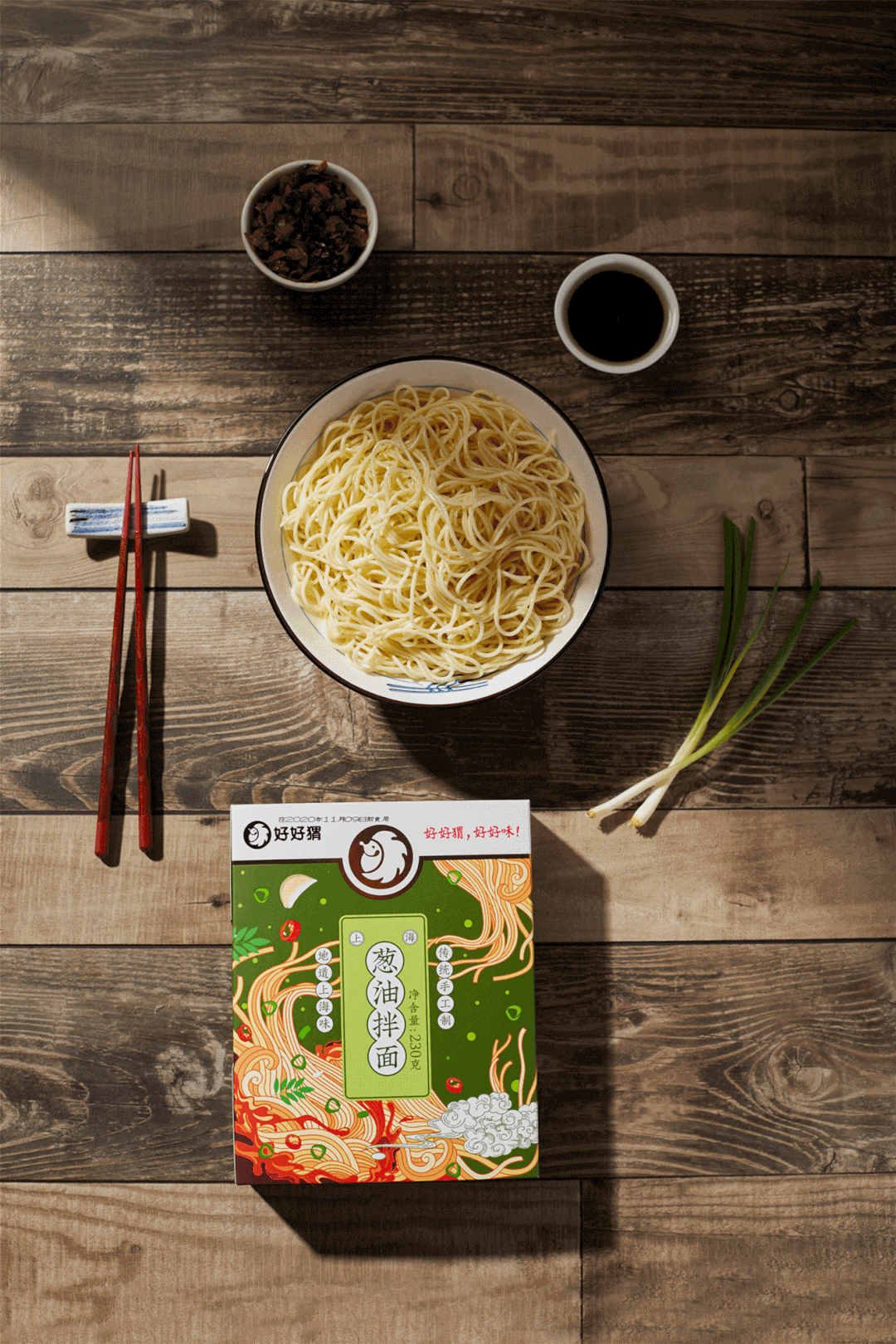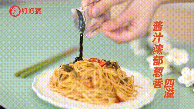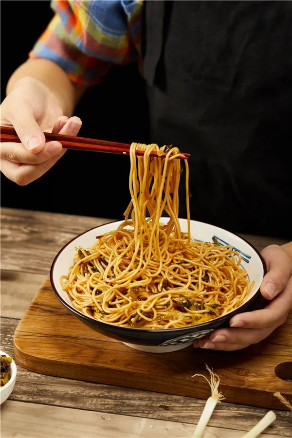 2.加入葱油酱包及其他配菜,快速搅拌。
