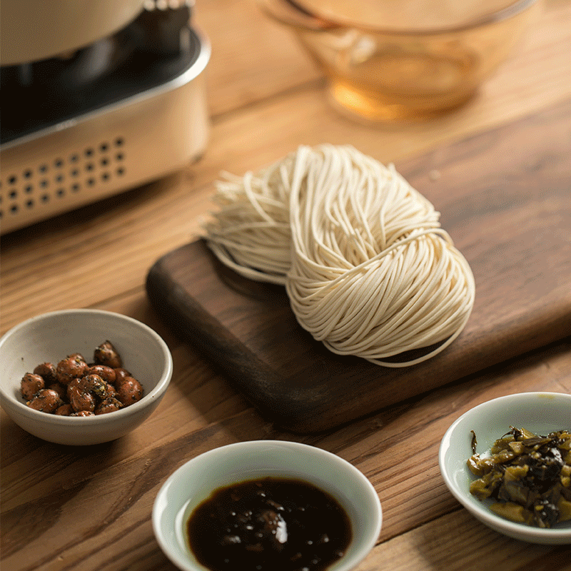 1.锅中放入500ml水煮沸,加入面条,大火煮2分钟捞出。