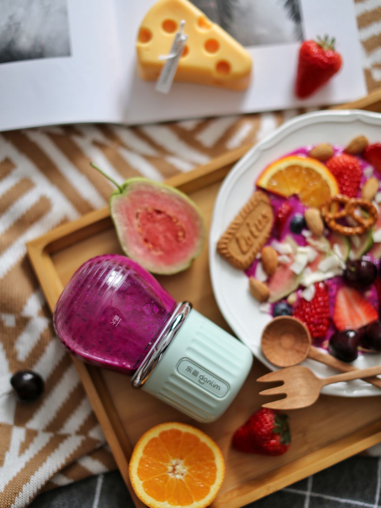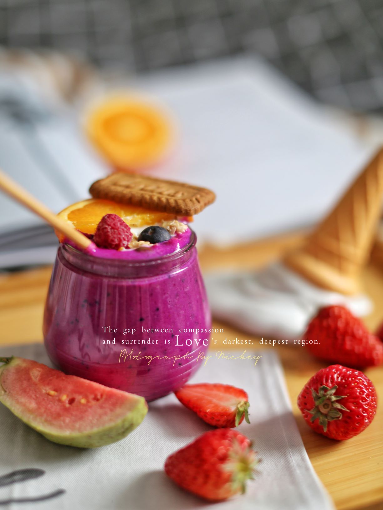 ③最后加入莓果和小饼干摆盘就完成咯!