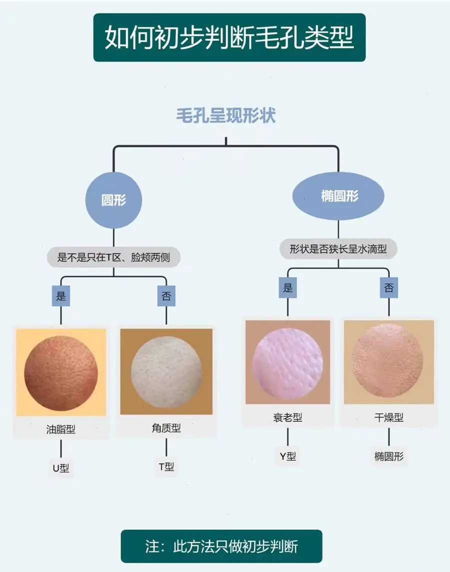 👉毛孔现象:Y型毛孔粗大且狭长,呈水滴型