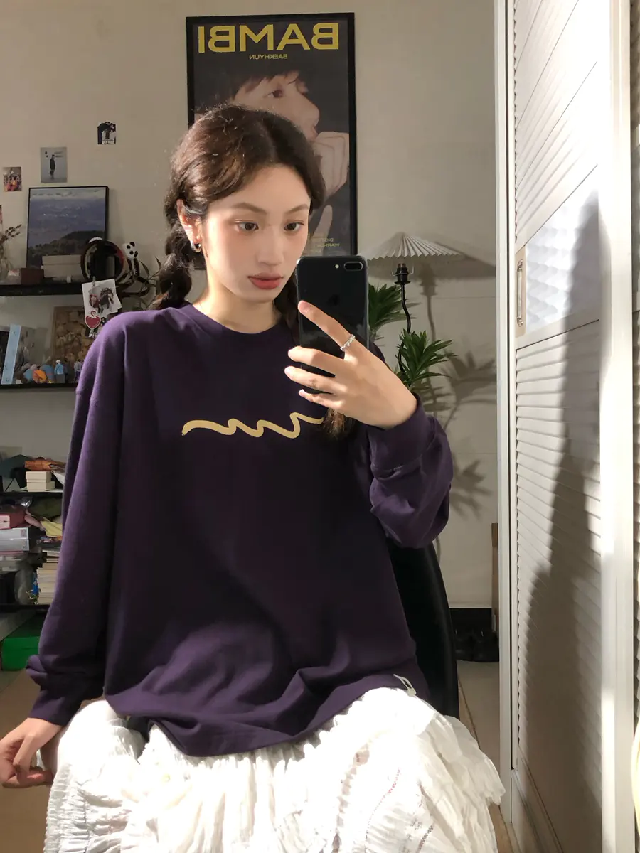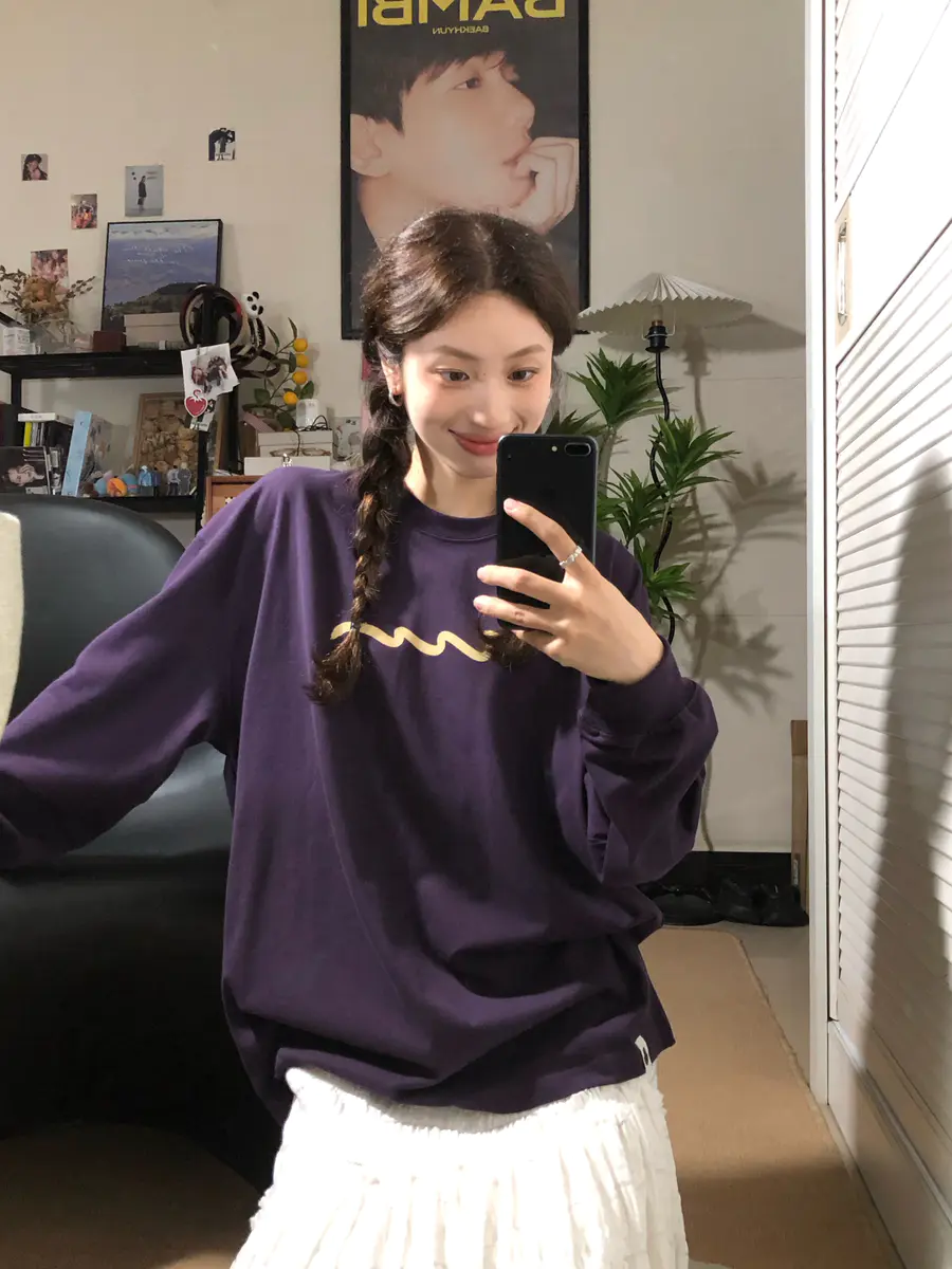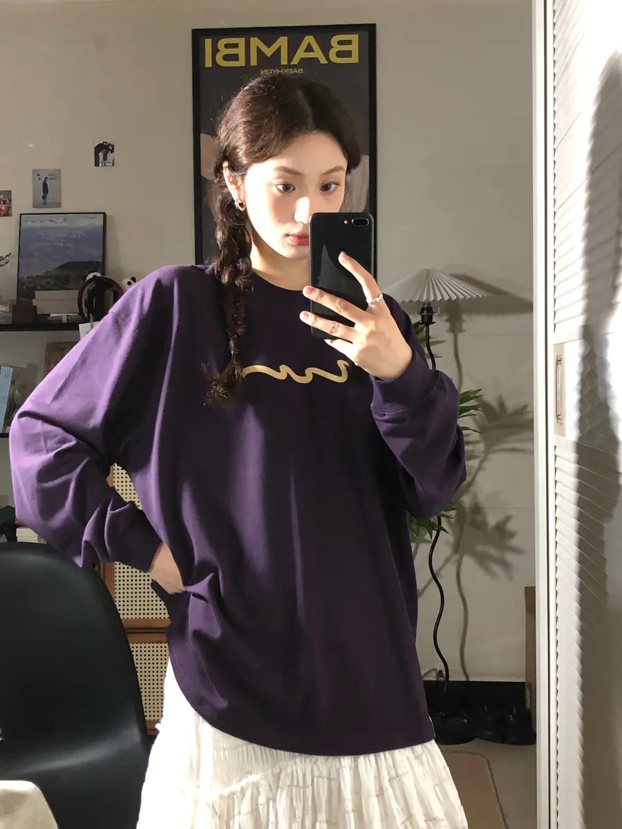 这件显白又高级的茄紫色T恤太适合秋冬了~🍆