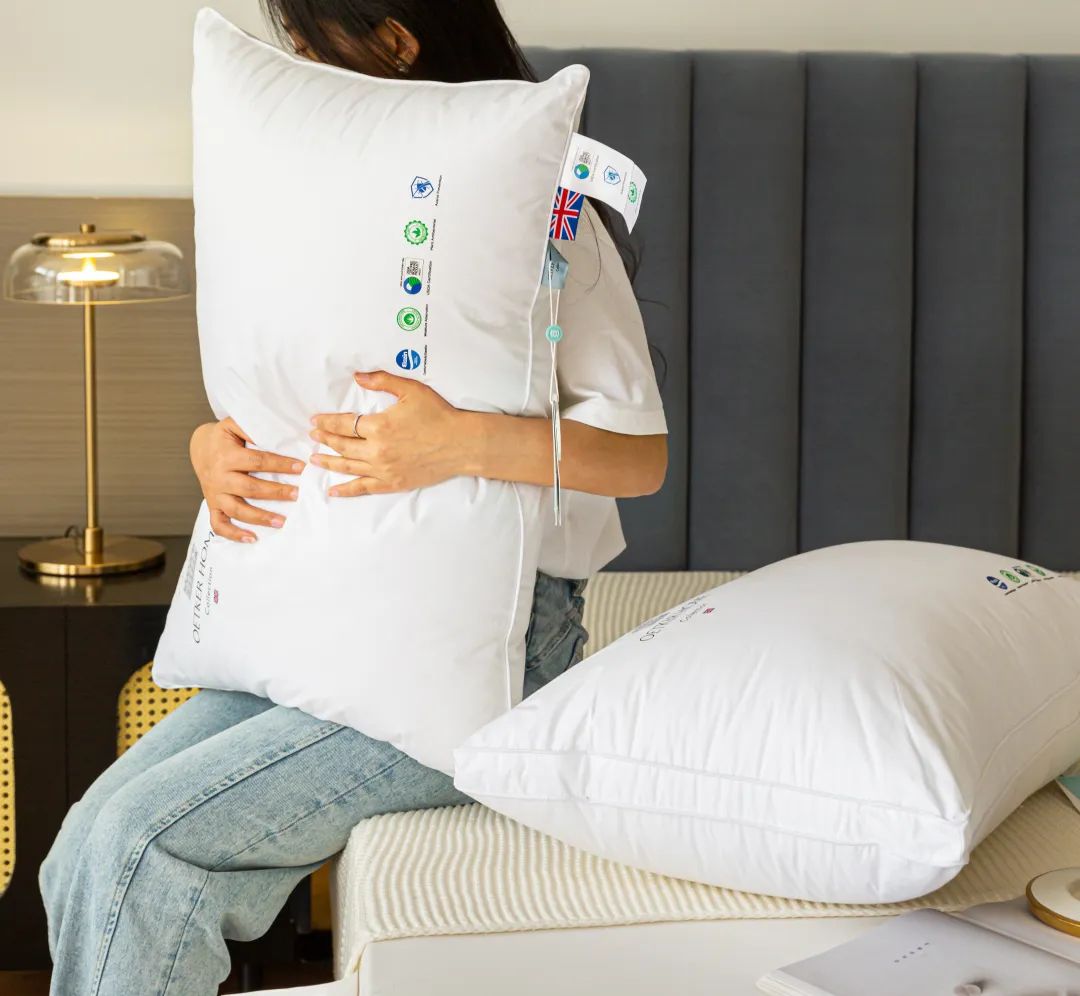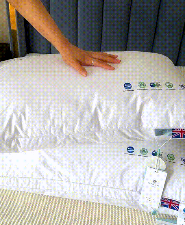1、欧洲七星级酒店同款,蓬松度高,超柔回弹,贴合颈椎曲线,怎么睡都舒服。