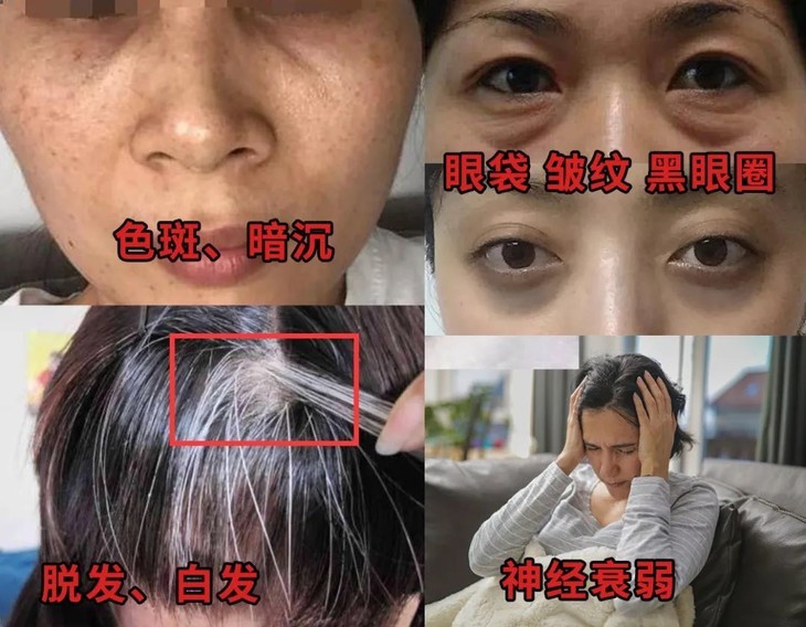 色斑、皱纹、眼袋、黑眼圈、脱发 白发...各种问题都来了,以肉眼可见的快速变老、变丑!