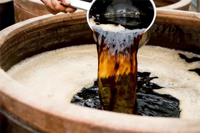 醋酸发酵结束后,还要淋醋和晒醋,晒醋在阳光下进行,时间为2-3个月,时长主要由酸度来决定。(工业化制醋一般不会晒,会添加冰醋酸增加酸度,加入色素和香精调色。)