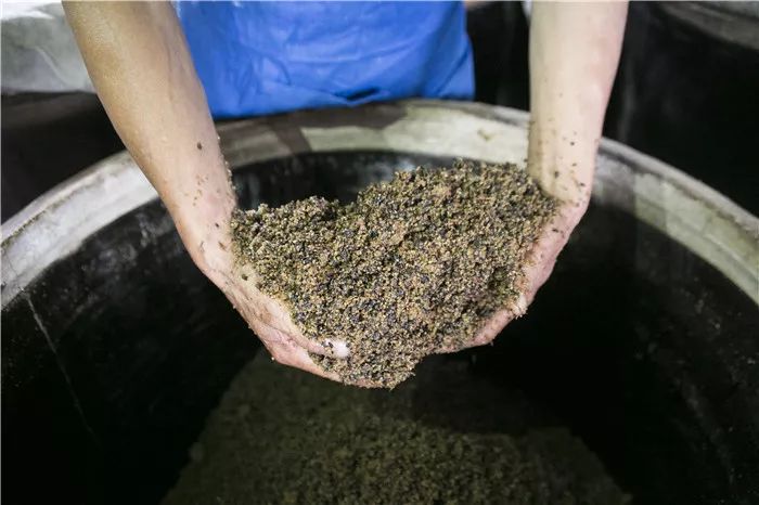 30天后,进入醋酸发酵阶段,将蒸好的小米米糠以30%的比例拌入,再次密封发酵,时间为28天。