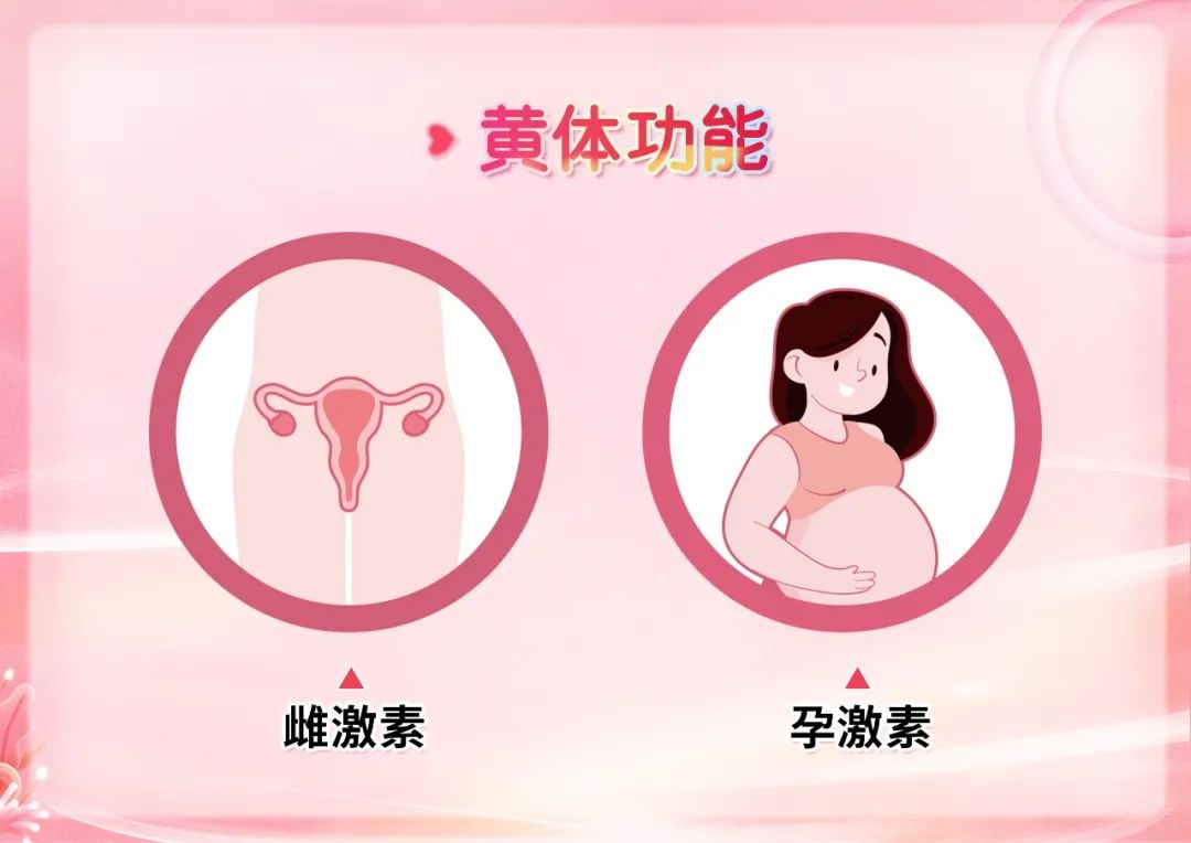 黄体的功能主要通过分泌的孕酮和雌激素实现,两种激素共同作用使子宫粘膜内腺体生长,子宫充血,内膜增厚,为受精卵植入作好准备。