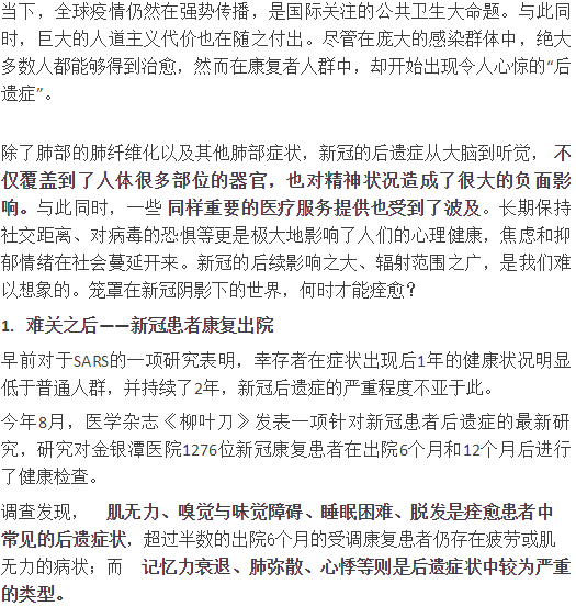 1.柳叶刀《1-year outcomes in hospital survivors with COVID-19: a longitudinal cohort study》