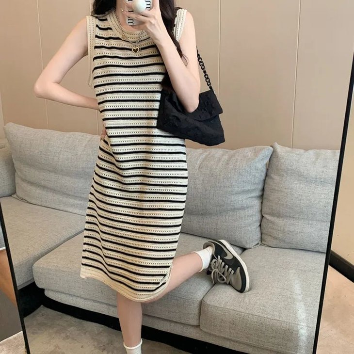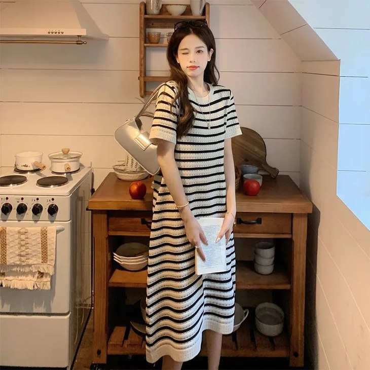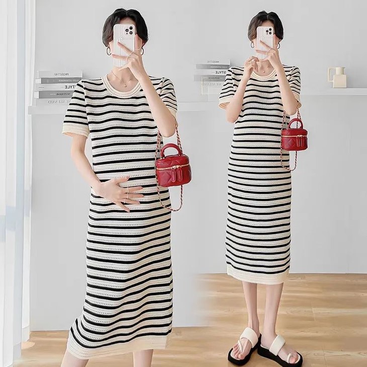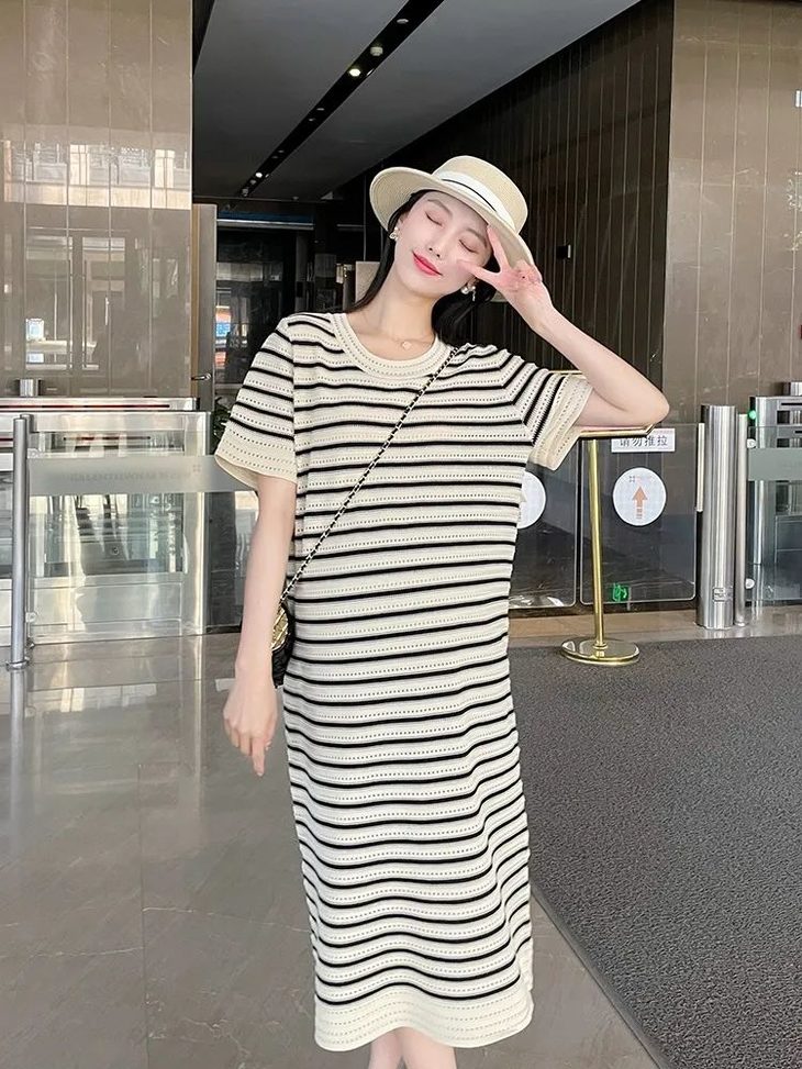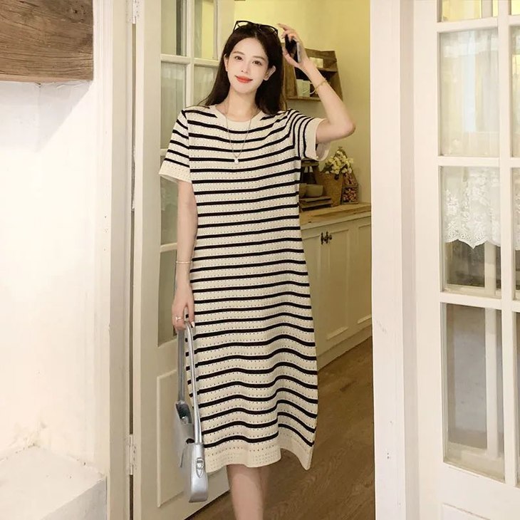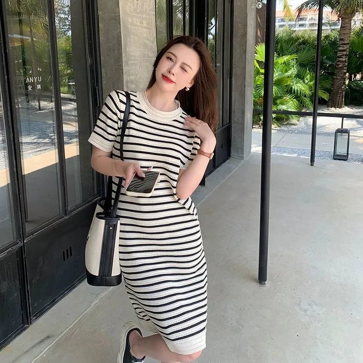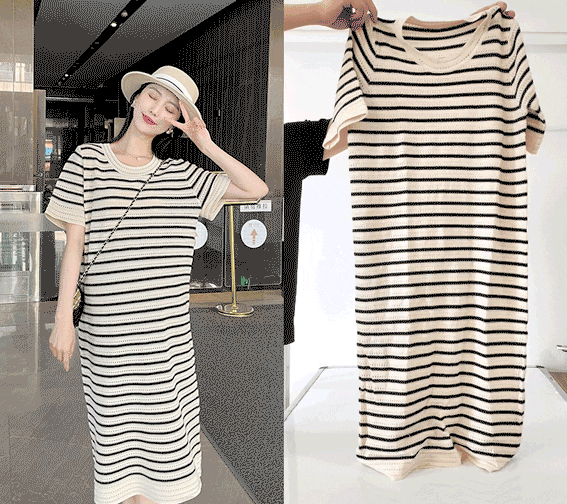 条纹针织裙是不挑身材的H版型,就连孕妈都能穿,遮肉效果十足,十分显瘦~