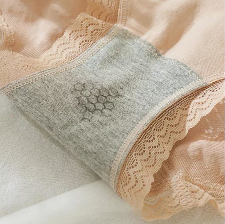 面料是整体全棉材质,AAA级石墨烯抗菌裆部,舒适蕾丝边