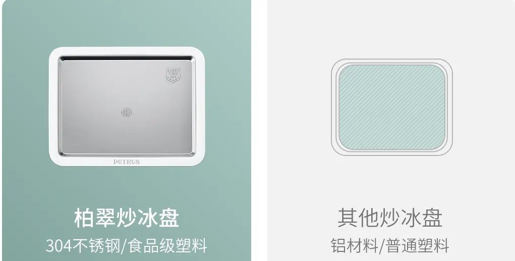 而柏翠炒冰盘采用的是304食品级不锈钢,耐腐蚀性高,更耐用,耐低温,制冷更高效。