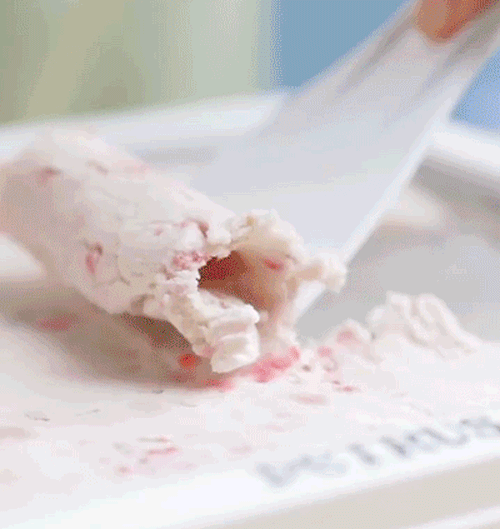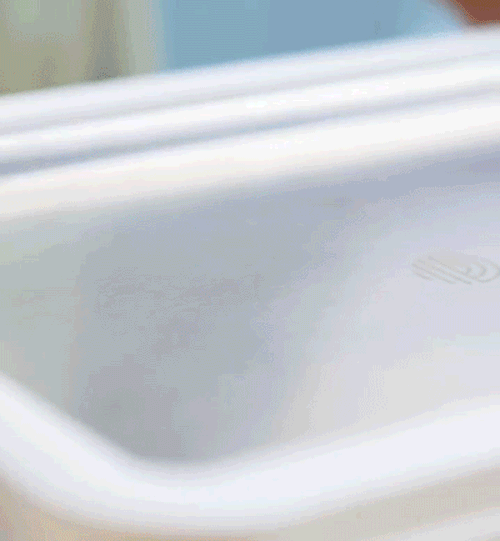 做之前,要将炒冰盘正面朝下放置冰箱冷冻室,冷冻12小时(24小时更佳)后取出,轻放在桌上。