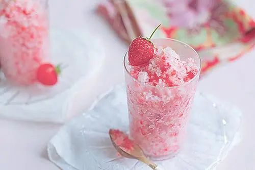 把果汁倒入炒冰盘,用铲子快速翻炒成冰沙后就可盛出,加个小草莓点缀,心情都会美好一整天!
