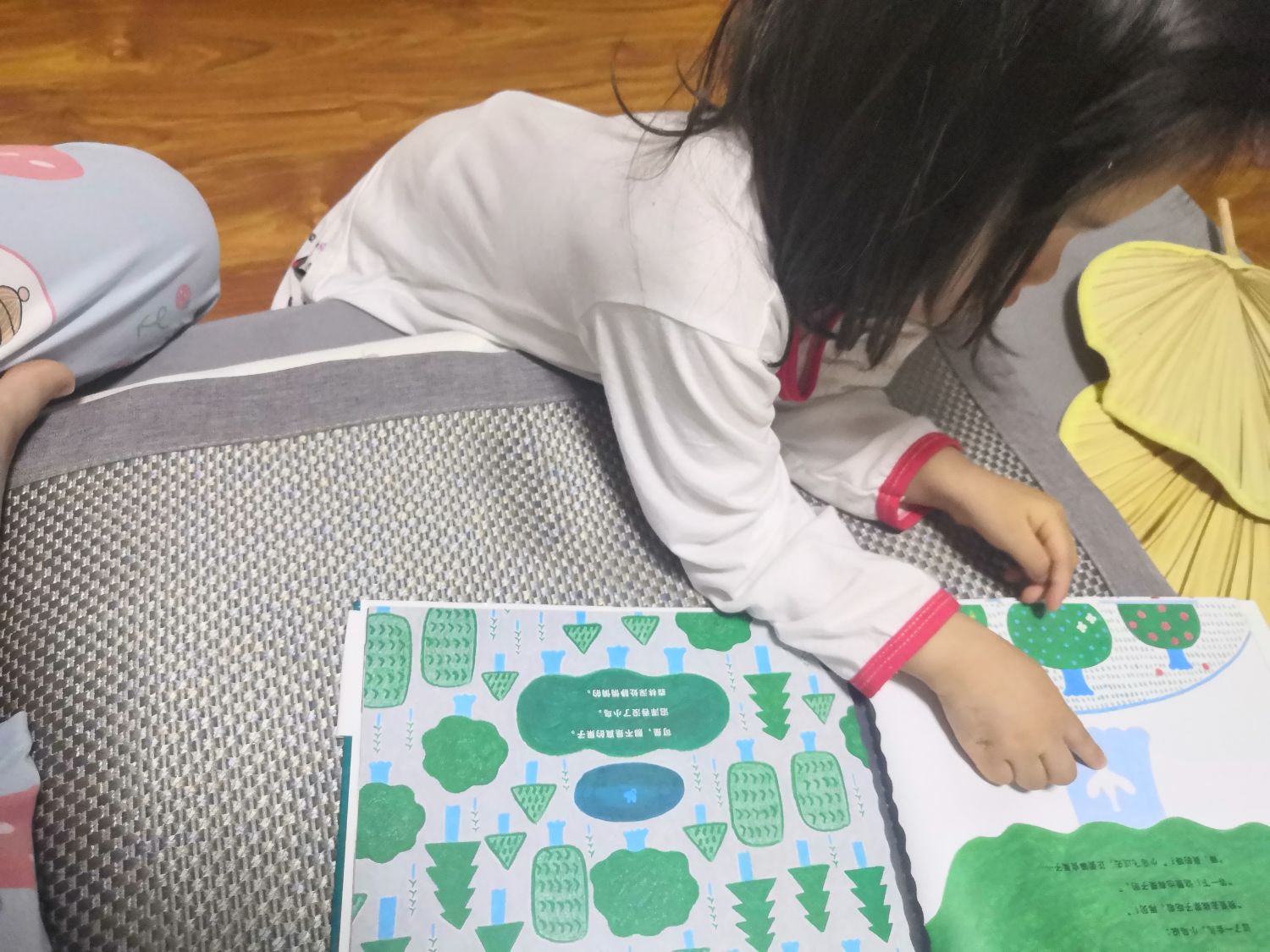 豆宝突然说,哇树变成了粉色(树的根)。我现在才发现这本书的树根居然变了颜色,我问她之前看到的是什么颜色。