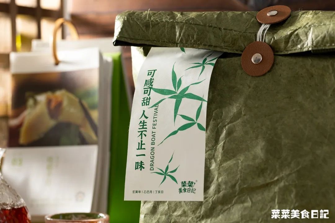 用粽叶青色的礼袋,包裹着粽叶青色的粽子,由内而外都是端午的颜色。