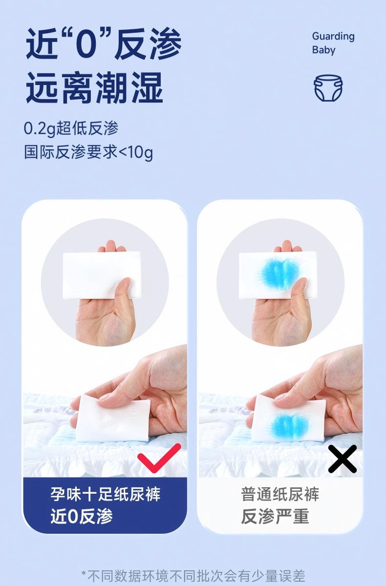 1.透气干爽:选择透气性好、吸收力强、反渗低的纸尿裤。