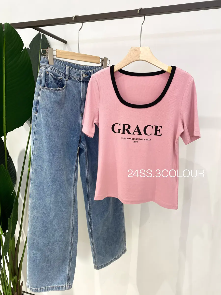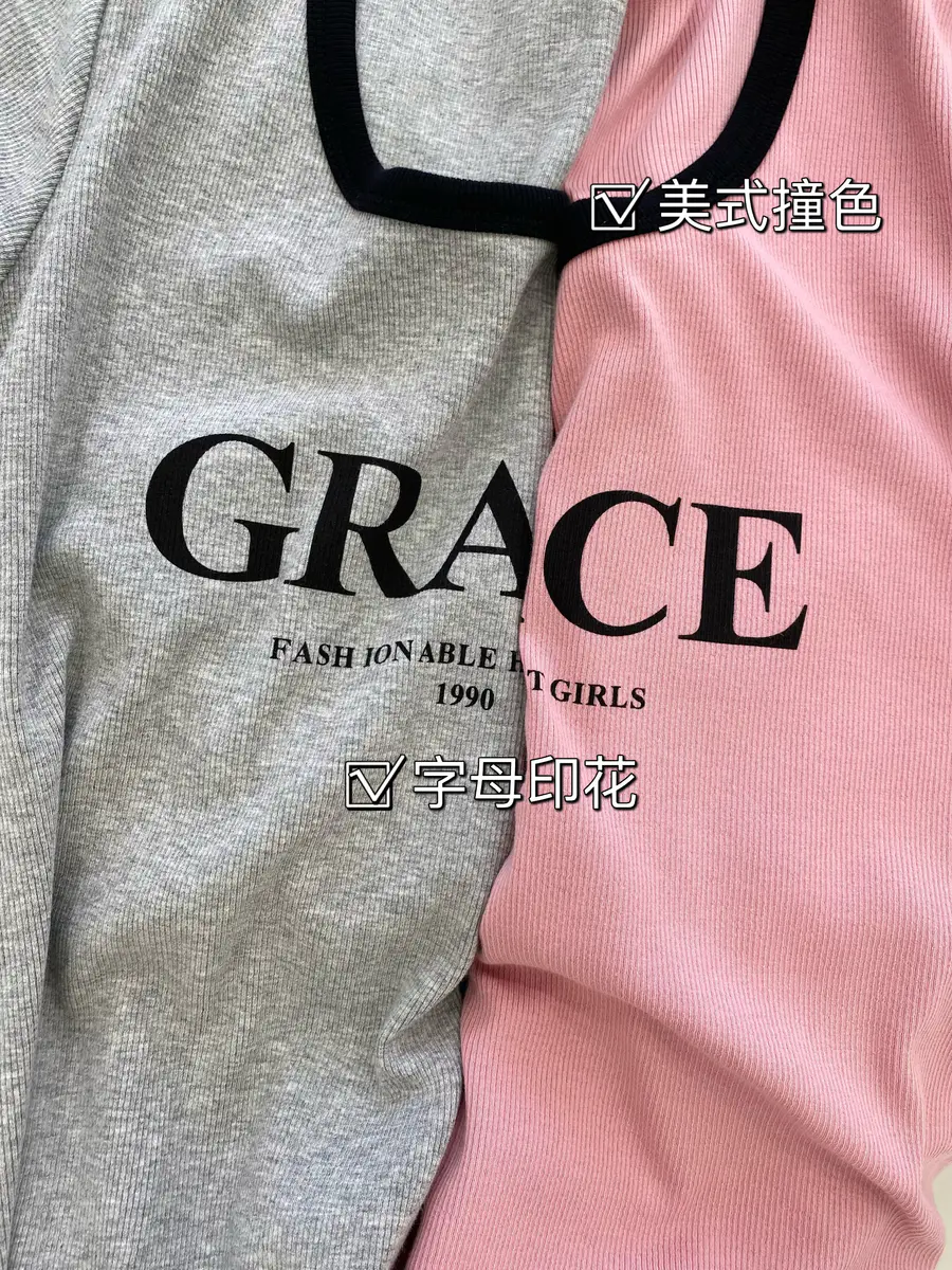 烟粉浅灰两个色调基本没有会出错的,黄白皮均可。大字母装饰自带一种美式风格,穿去看音乐节也很合适哦~