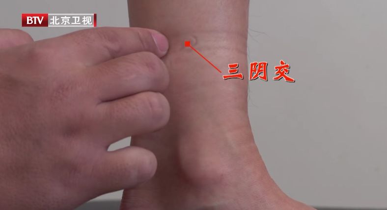 位于足内踝尖上三寸(四横指),胫骨内侧缘后方的位置。三阴交是脾经、肝经、肾经的交汇穴。