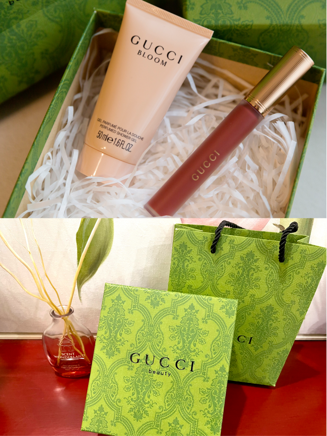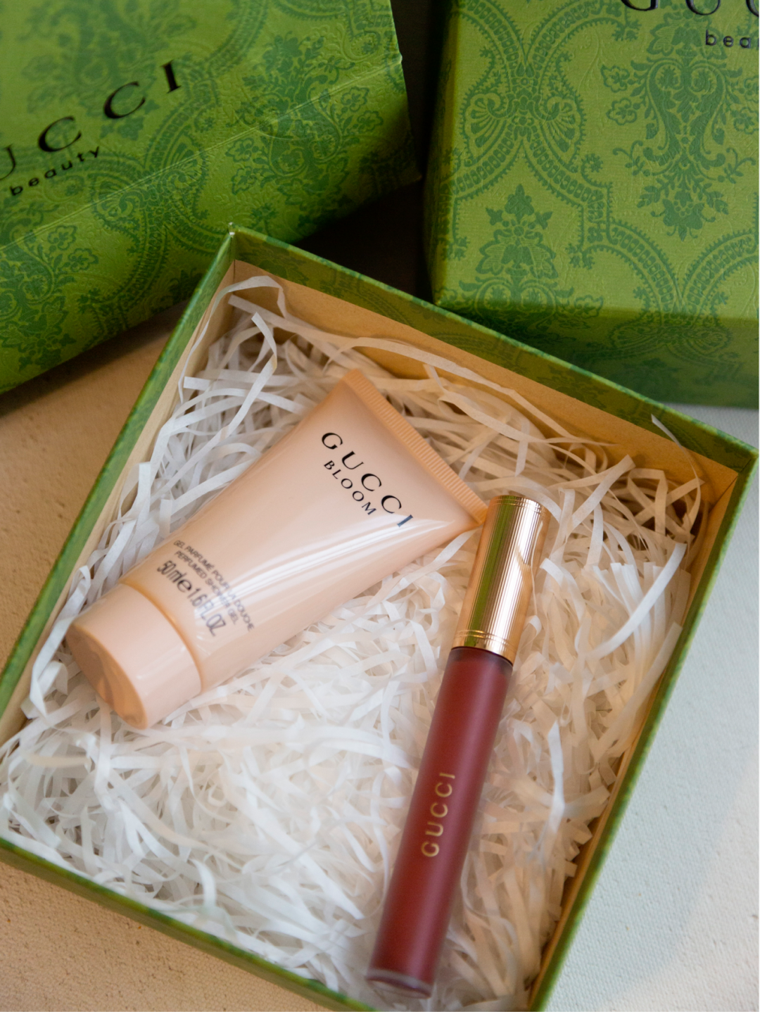 果绿色暗纹GUCCI包装,精致又高级,不管是送人还是自用,都很有排面。