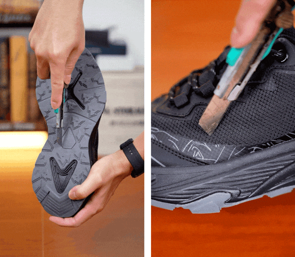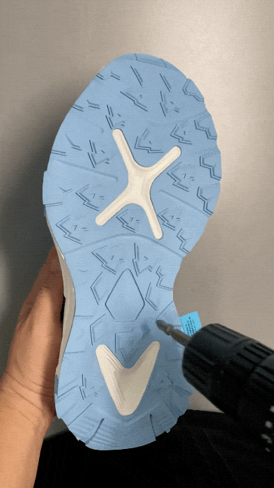 我们甚至动用电钻直接冲击鞋底最关键的着力部位。