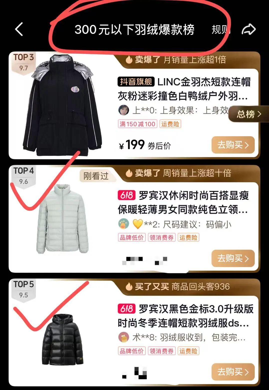 全网销售量在300元以下羽绒服榜单更是榜居要位!