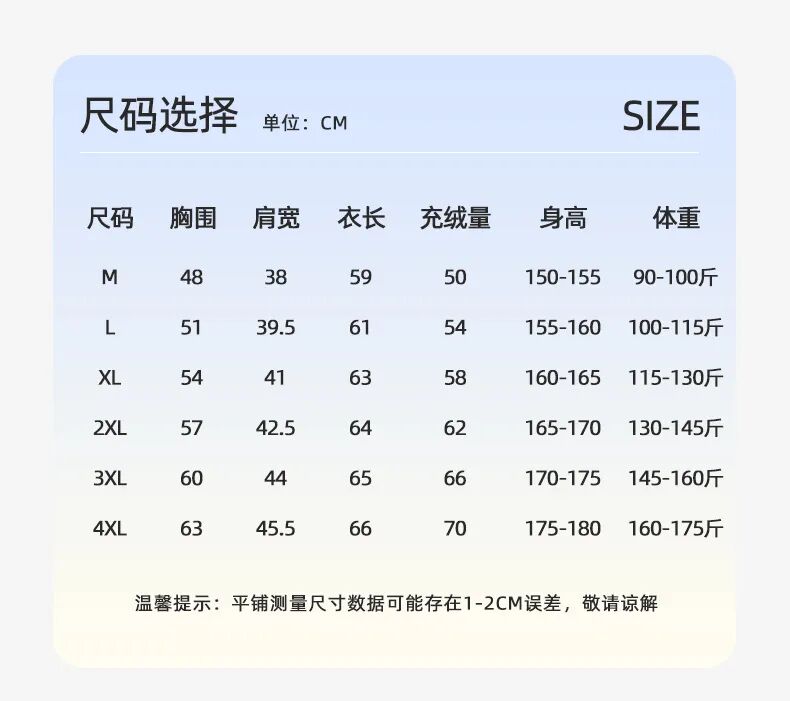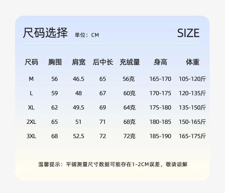 充绒量透明化:M码50克起步,4XL高达70克,寒冬穿出“移动暖炉”效果!