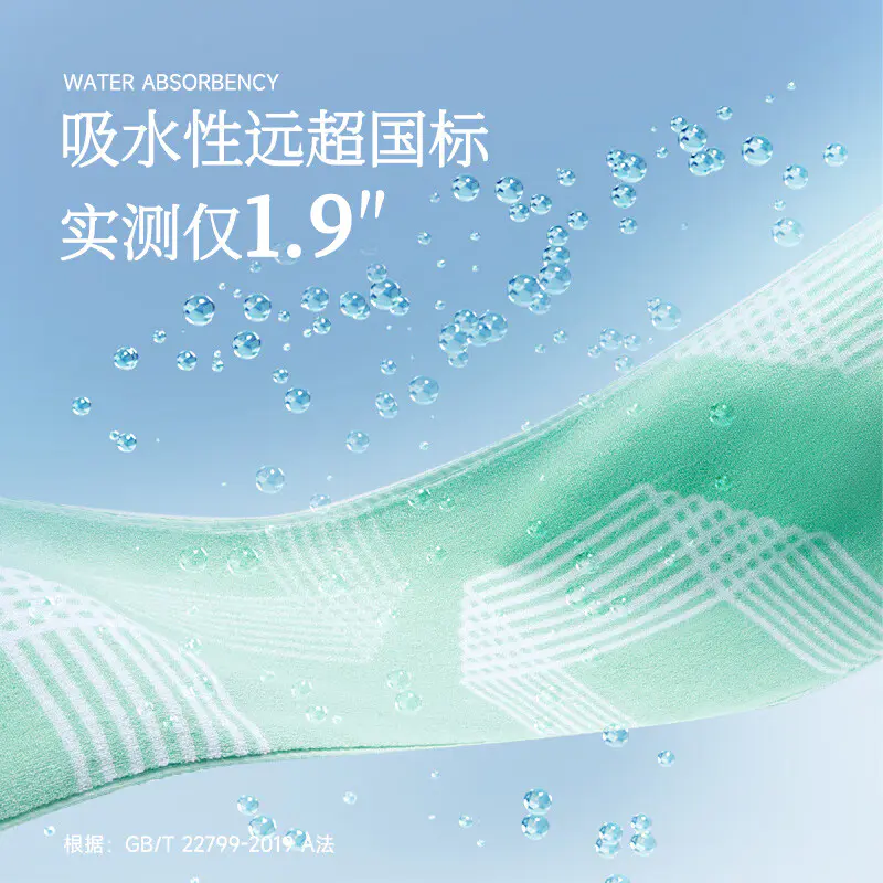 高吸水性:吸水性远超国标(实测仅1.9英寸),流汗不留汗,快速吸水不黏腻。