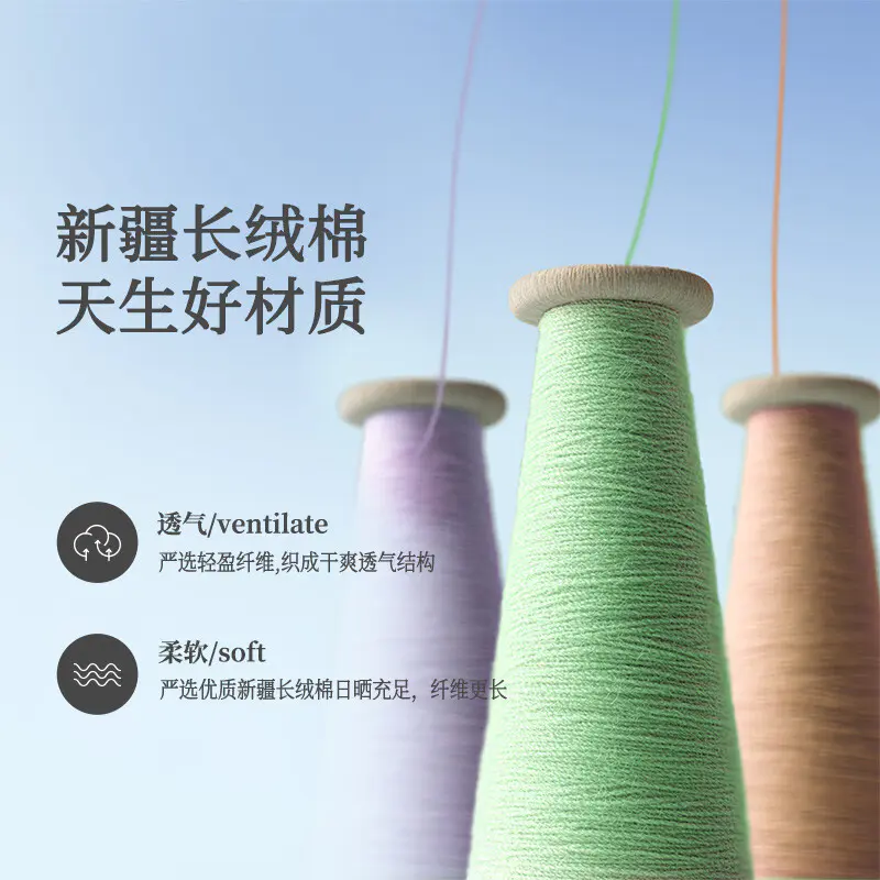 100%新疆长绒棉:采用日晒充足、纤维轻盈的优质新疆长绒棉,透气柔软,天然环保。