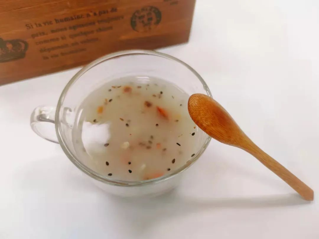 坚果和果干与藕粉充分交融,入口细腻丝滑、微甜,用东北词语来形容“滑溜儿”,同时还能嚼出果香味,能回味很久。