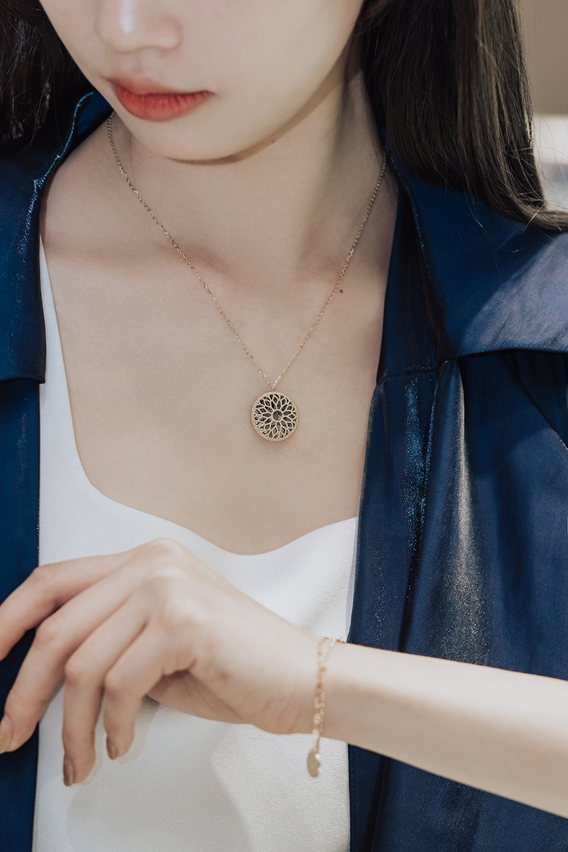 最近突然很喜欢樱花元素的吊坠!最后挑中了潮宏基家的这款~很有质感,镂空设计,跟春天太搭了~!