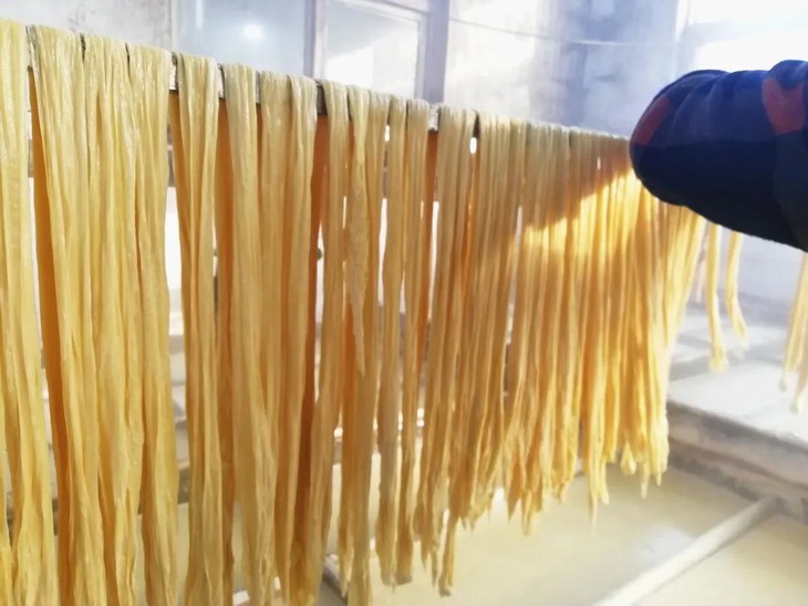 前前后后要经过传统的泡豆、磨浆、焖煮、手工揭皮、晾干等20多道工序。